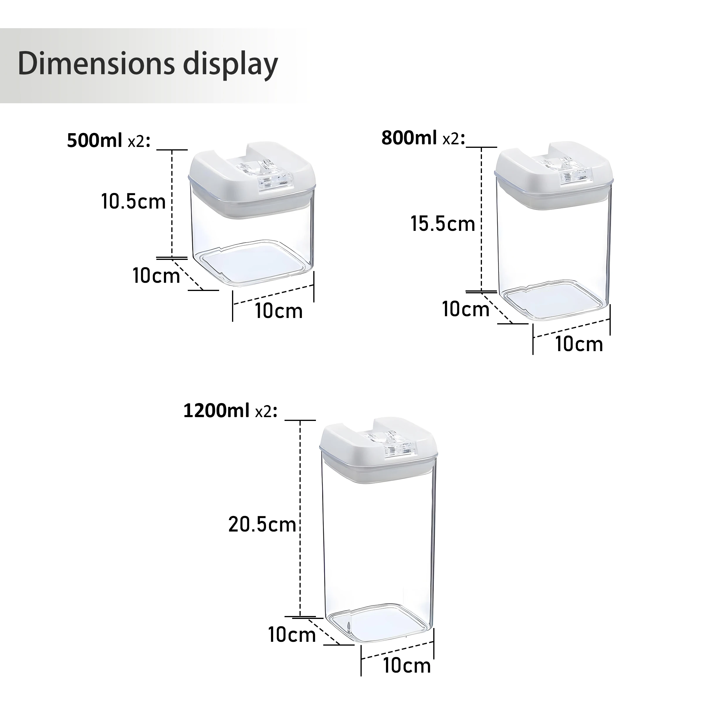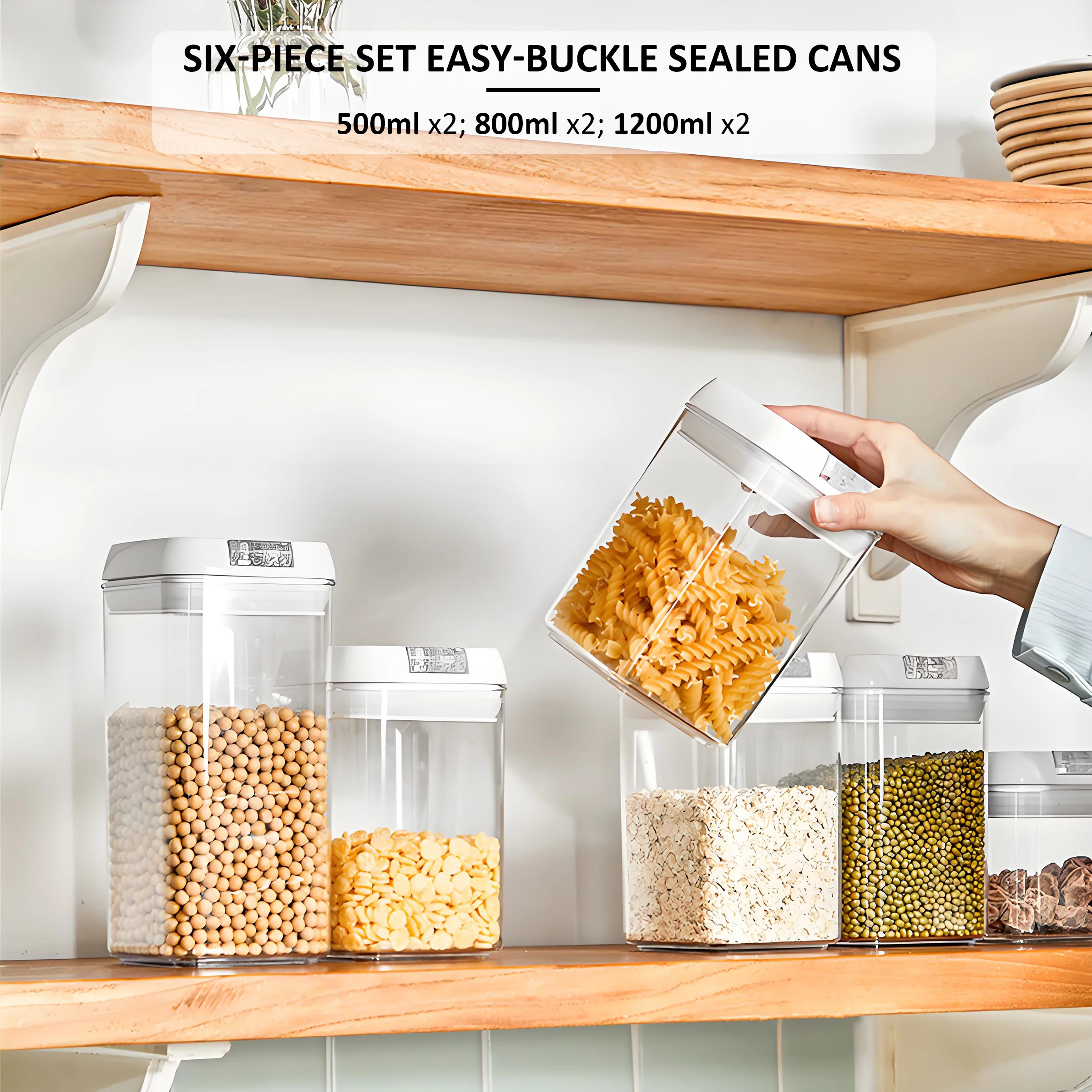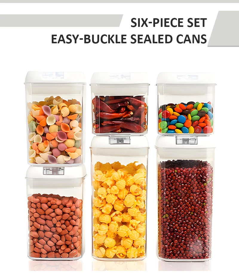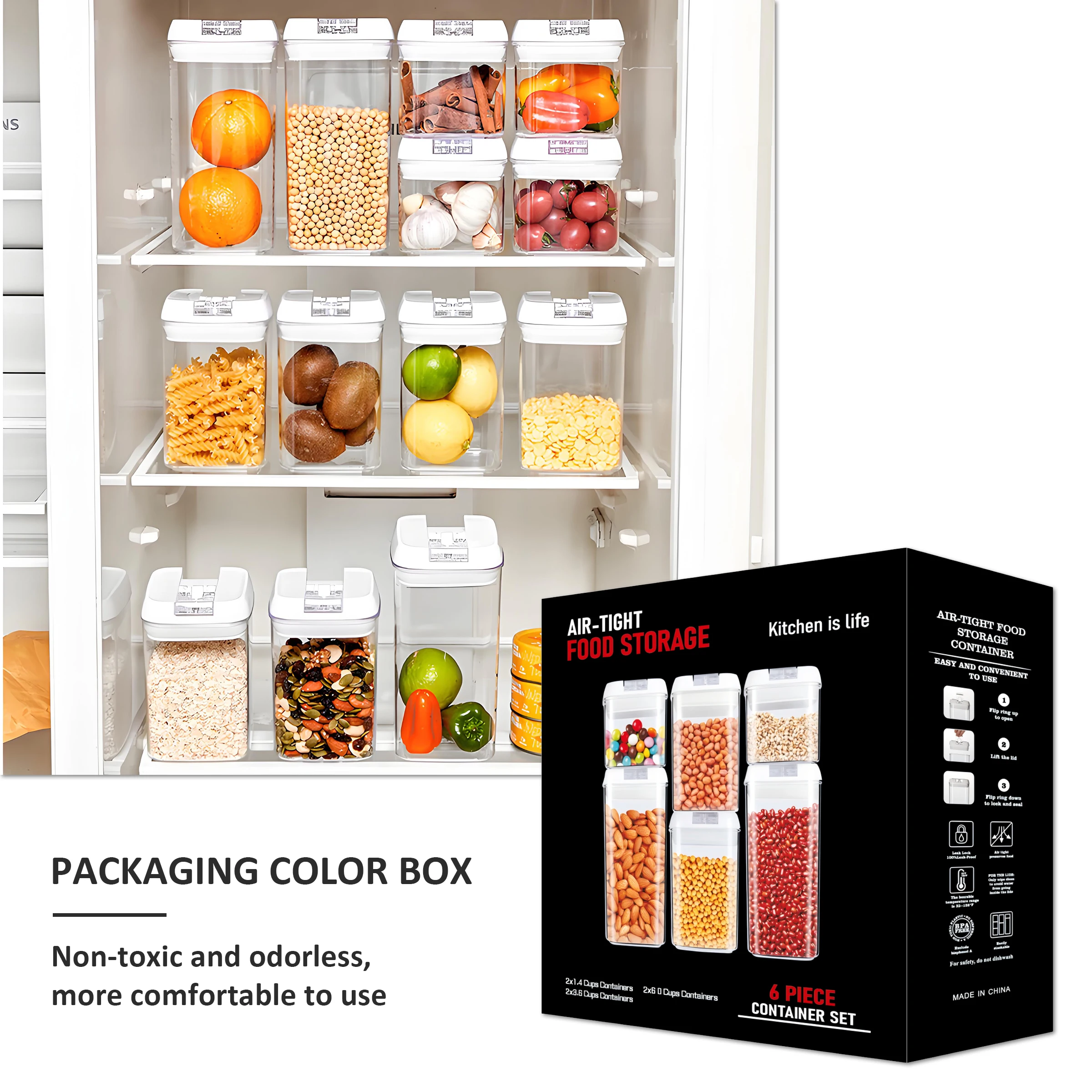 6er-Pack, rechteckige Aufbewahrungsbehälter für Müslis, Kaffee, Süßigkeiten und Lebensmittel für zu Hause, Organizer für den Kühlschrank, platzsparend, mit weißem Deckel