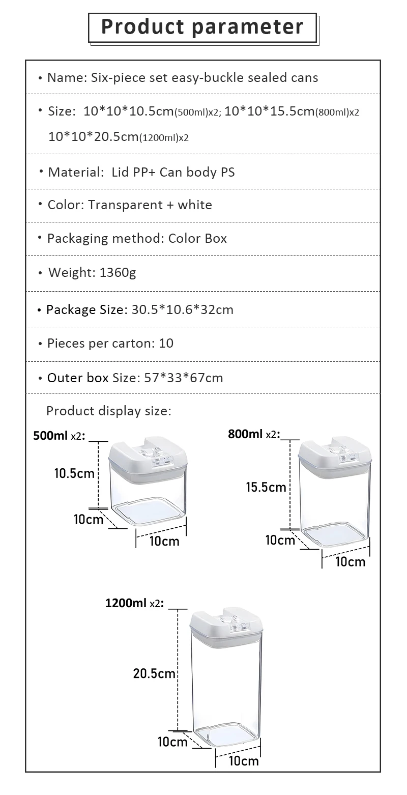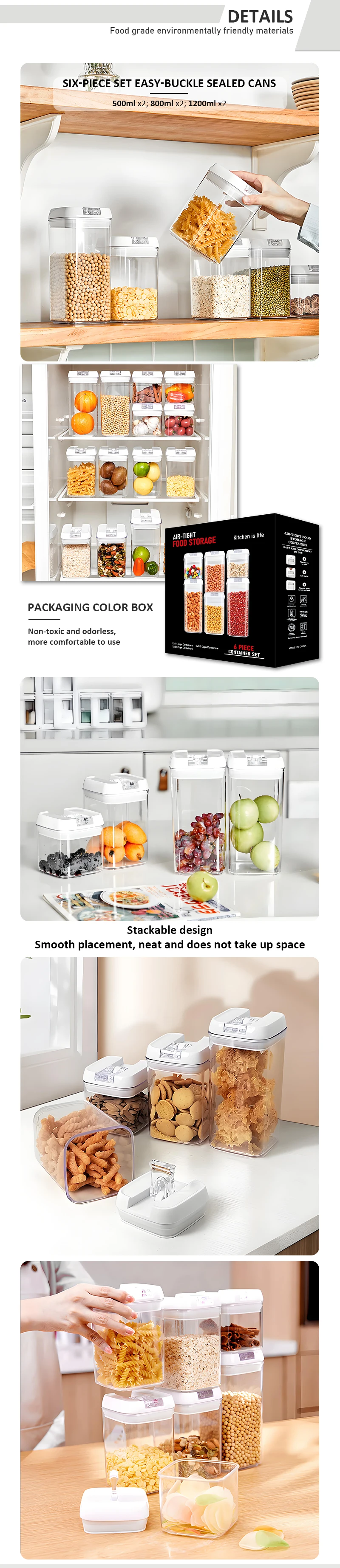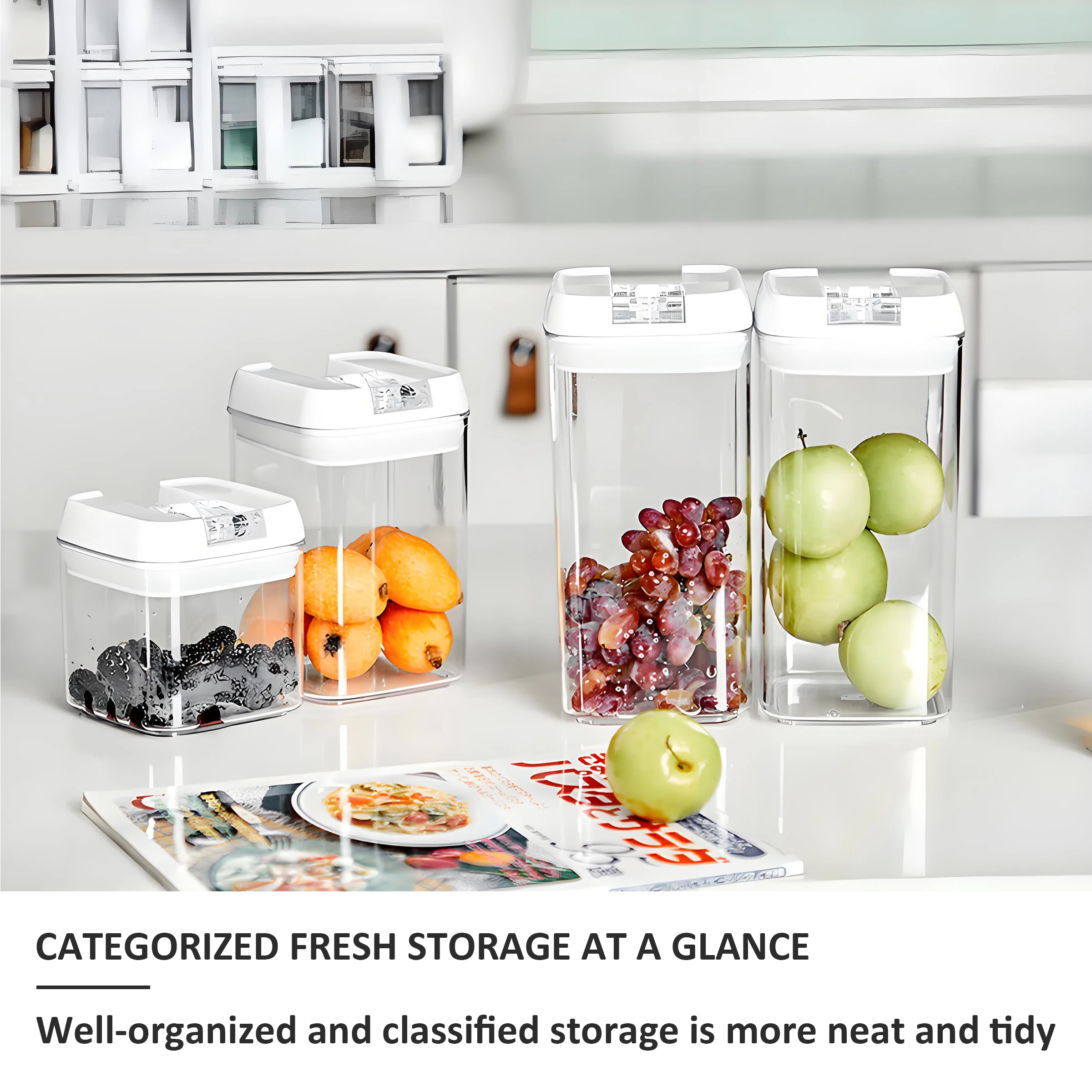 6er-Pack, rechteckige Aufbewahrungsbehälter für Müslis, Kaffee, Süßigkeiten und Lebensmittel für zu Hause, Organizer für den Kühlschrank, platzsparend, mit weißem Deckel