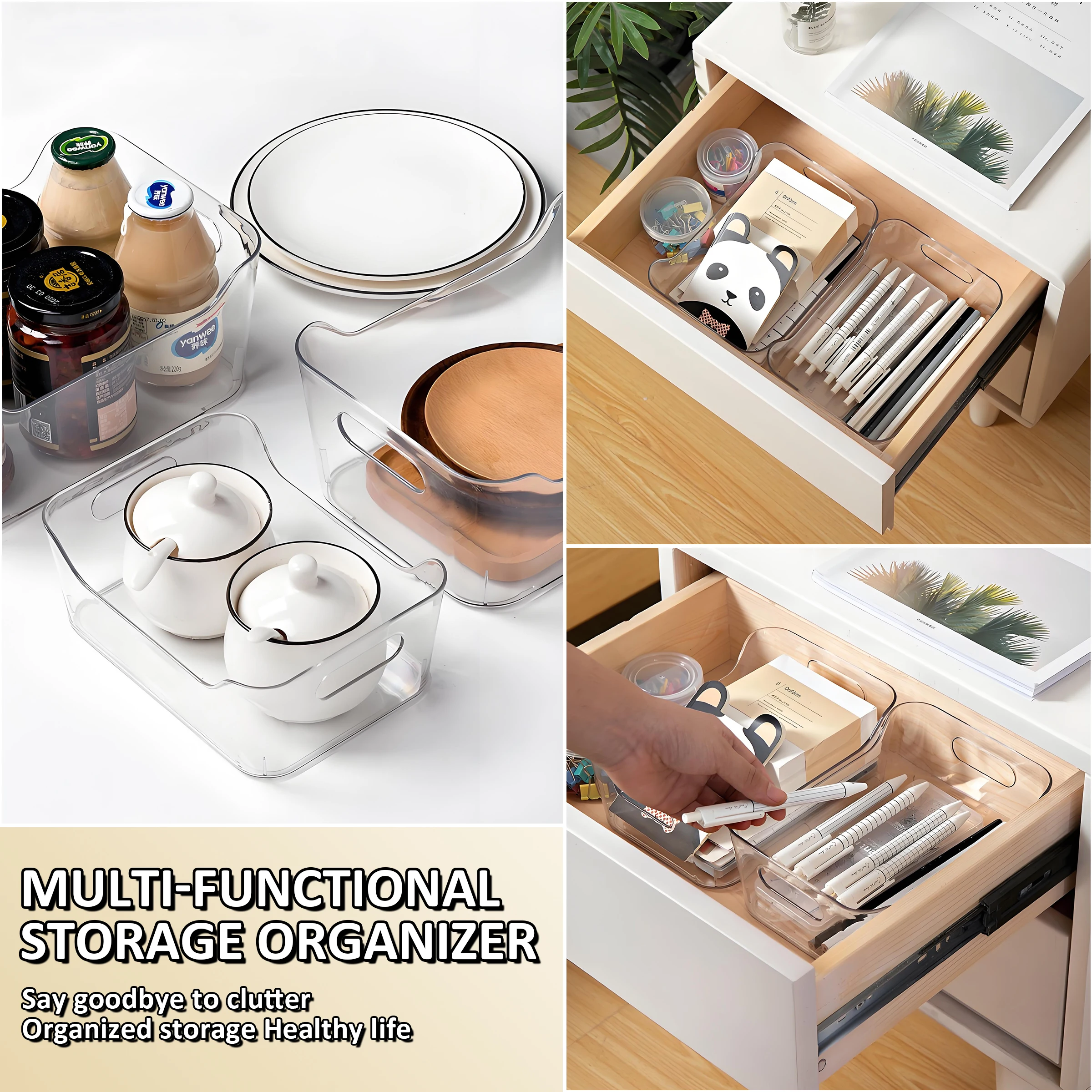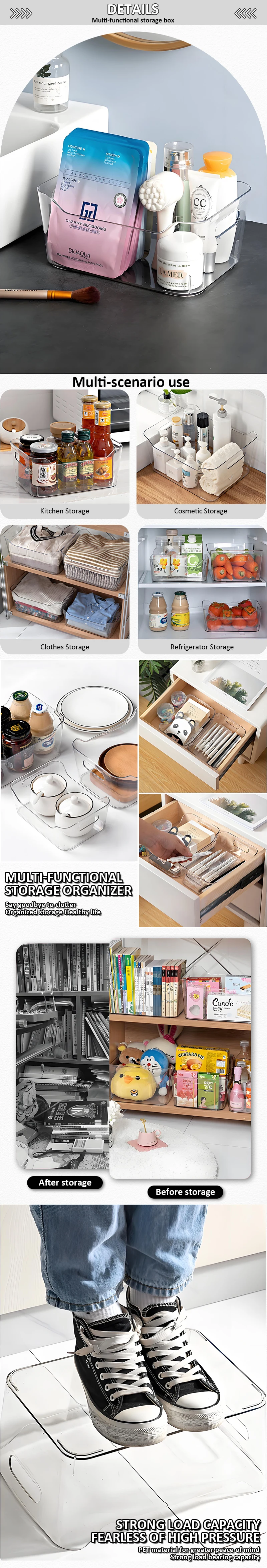 Scatole per Immagazzinaggio Rettagolari Moderne in Plastica PET Trasparente per Organizzazione Domestica per Abbigliamento e Trucco in Bagno Armadio Stanza Hotel