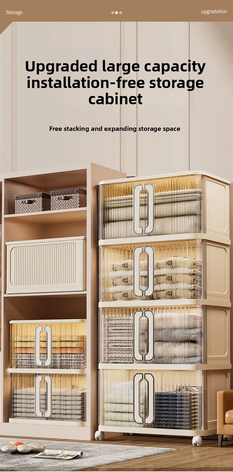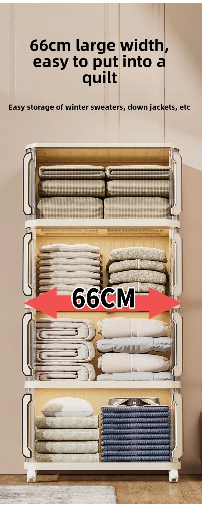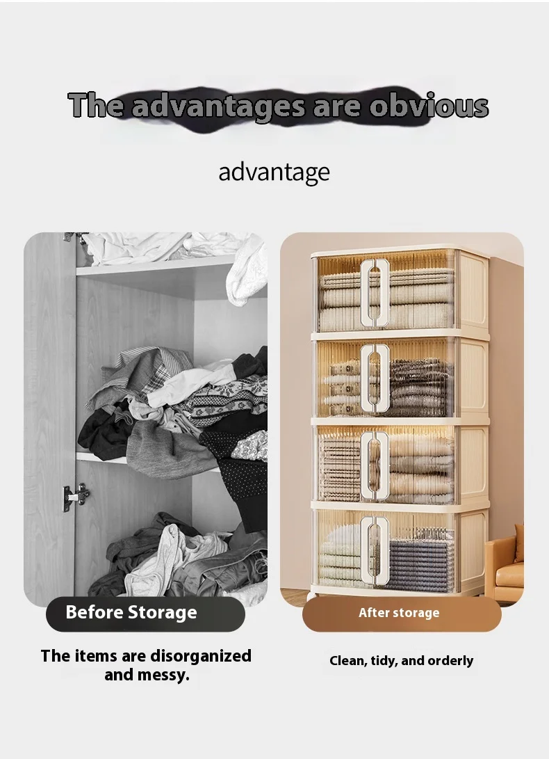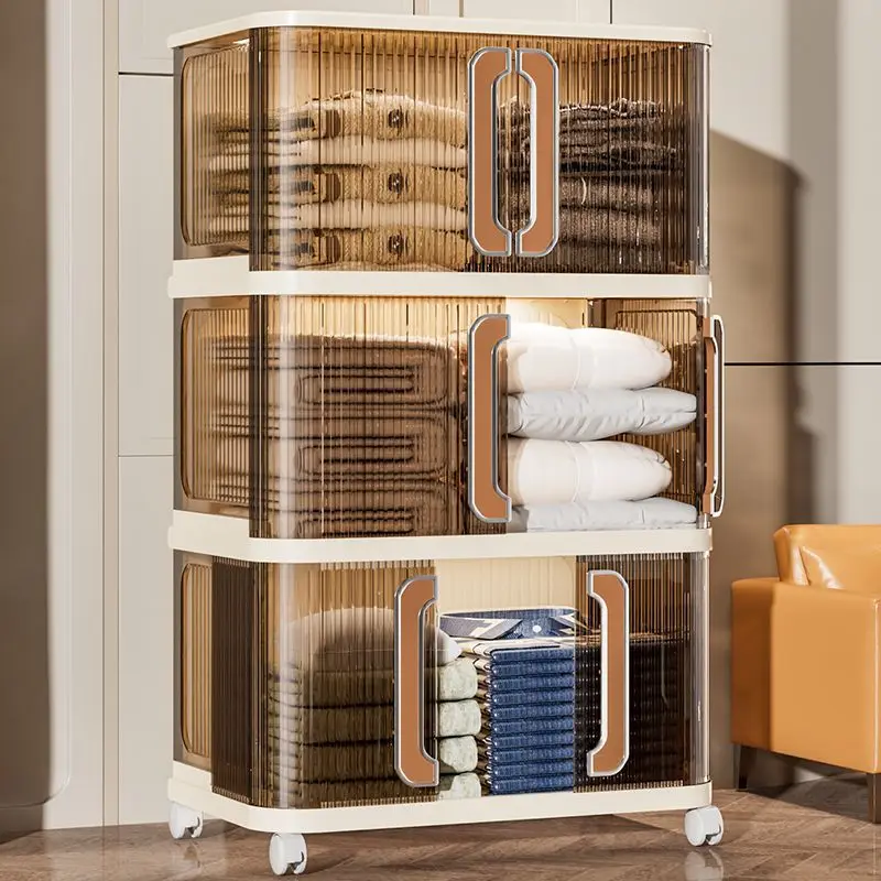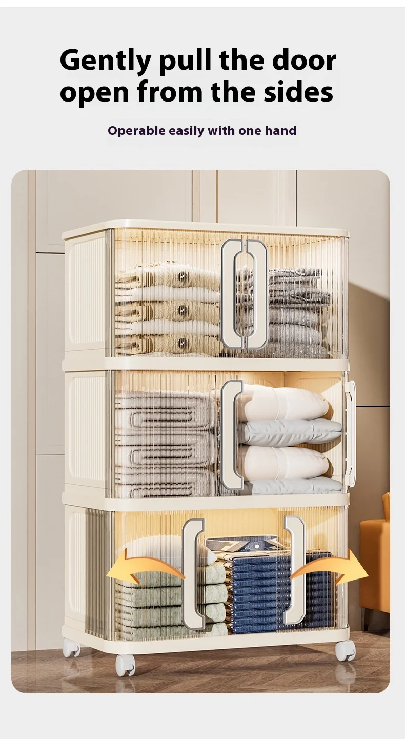 Gratis soverom installasjon Låsbar PP plast oppbevaringsboks for leker og garderobeorganisator, brettbar, uttakbar oppbevaringsskap