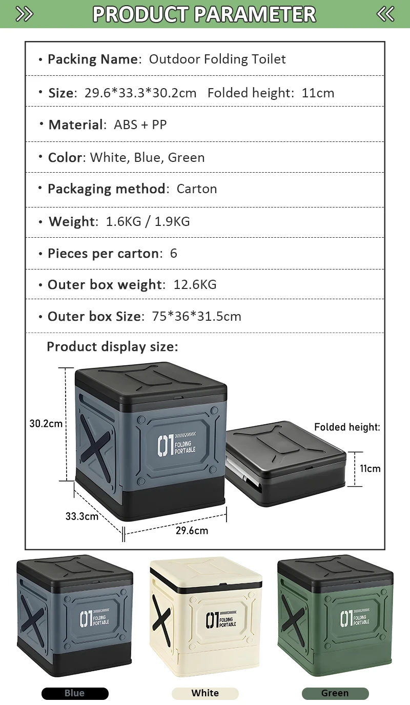 Høykvalitets plast transportable leirbaderørende god kvalitet vaskbar og brettbar for utendørs bil camping reise transportabel pott