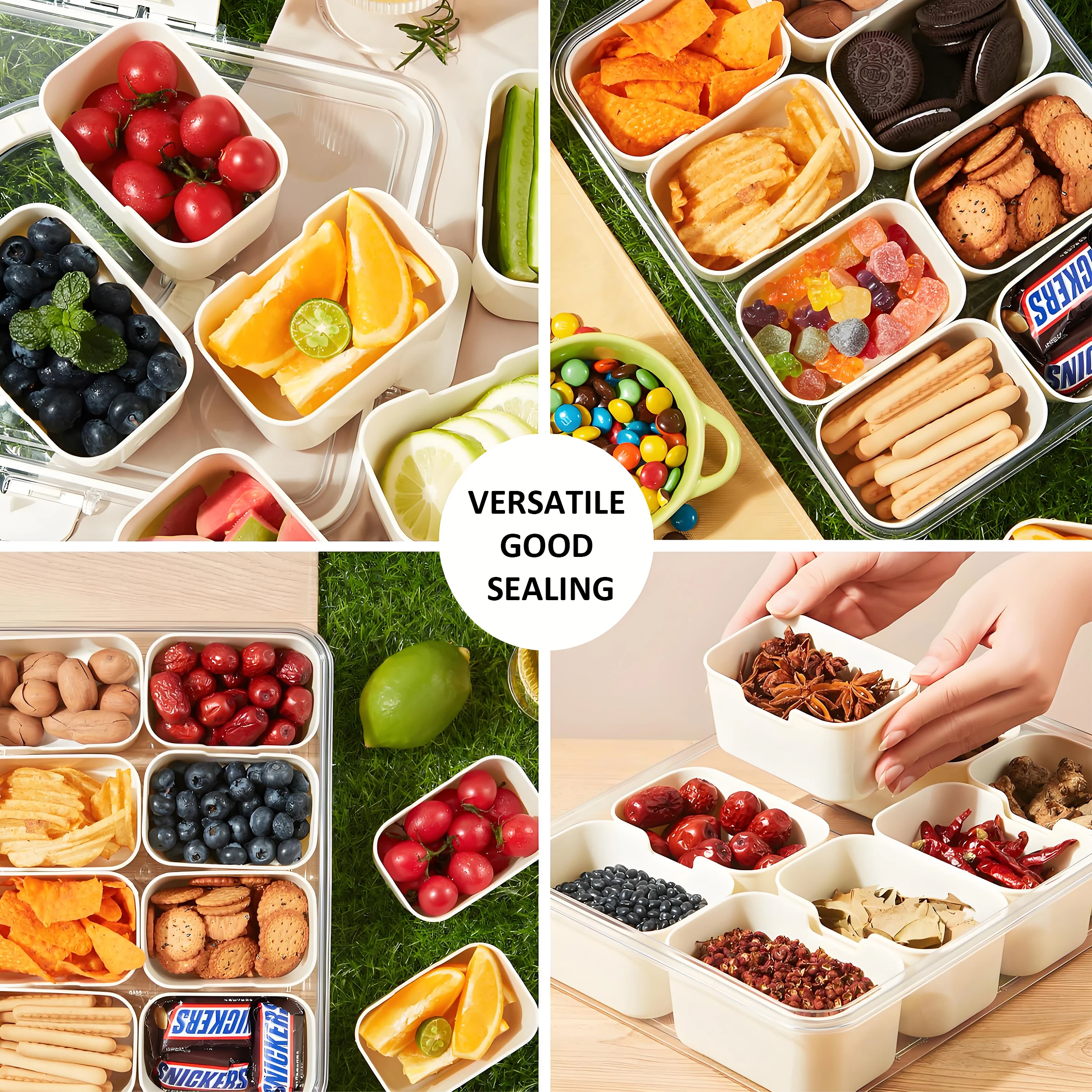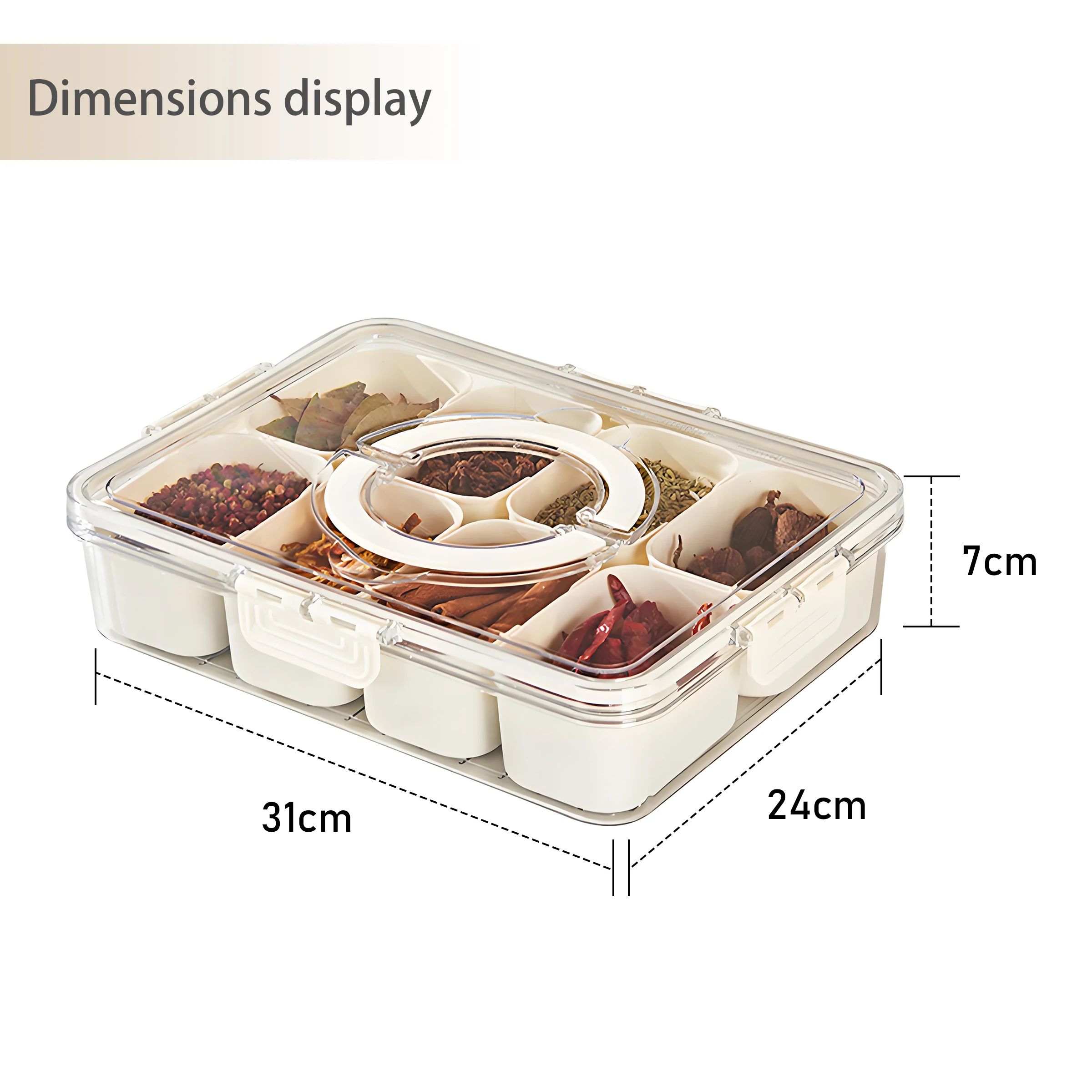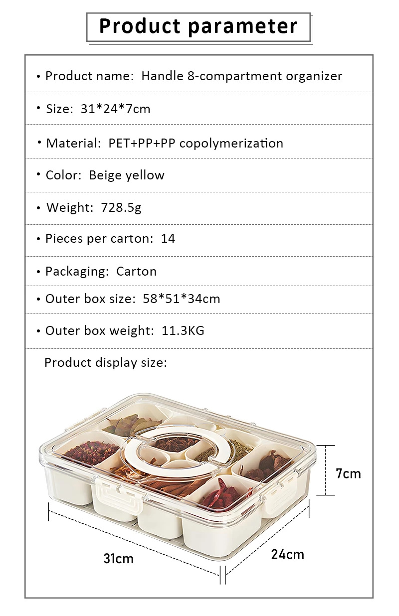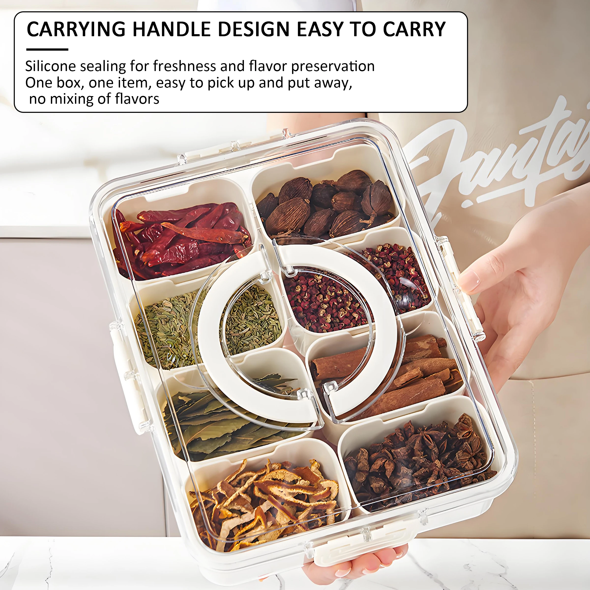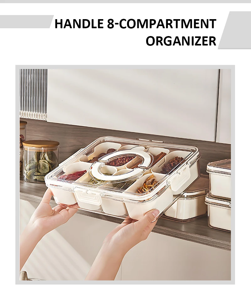Hett produkt Bærbar 8-fag transparent snackskrue med plasttett faginndeling beholdere til kjøkkenbruk