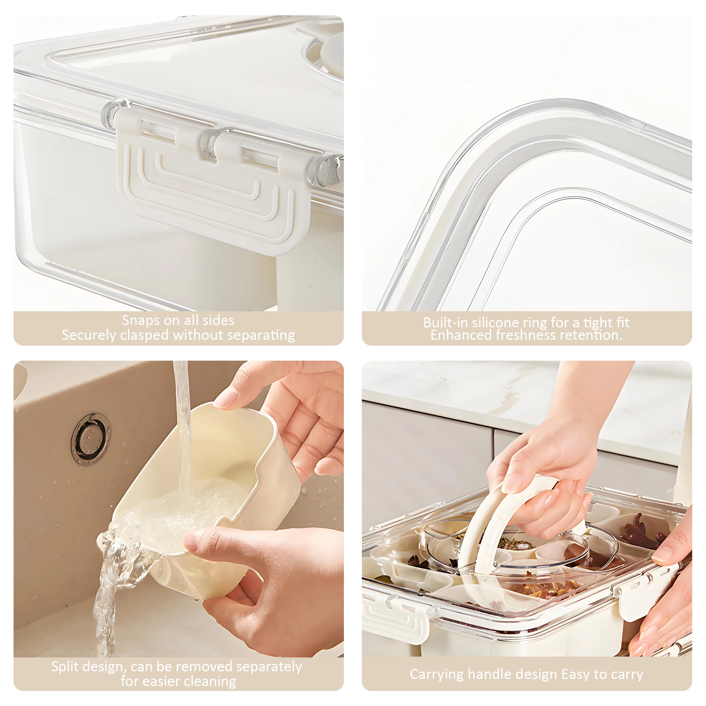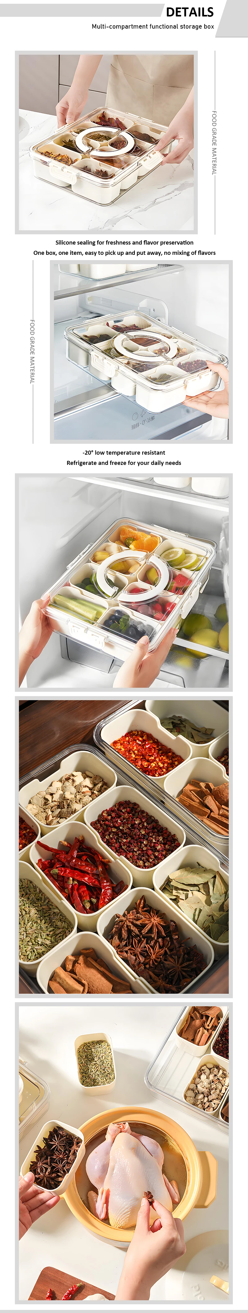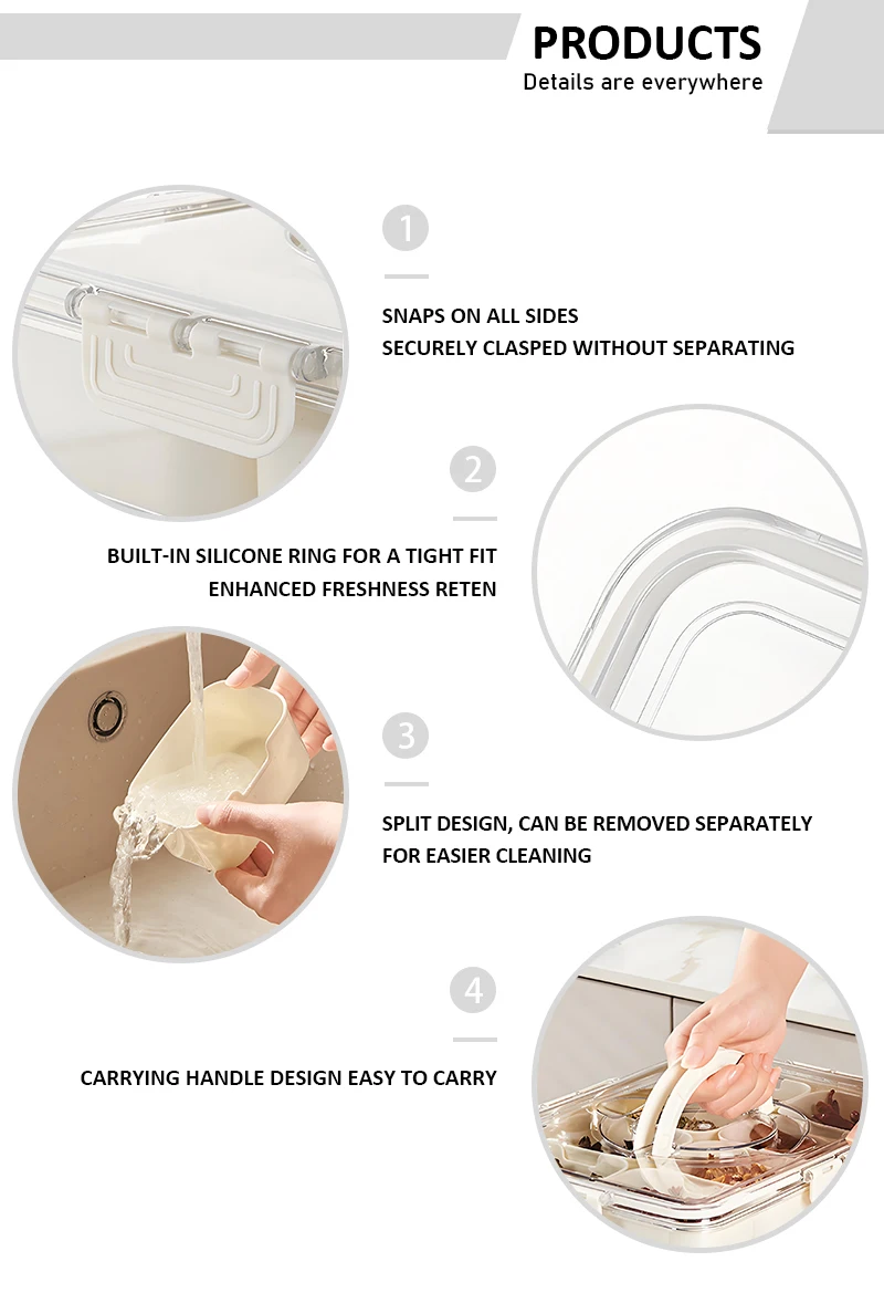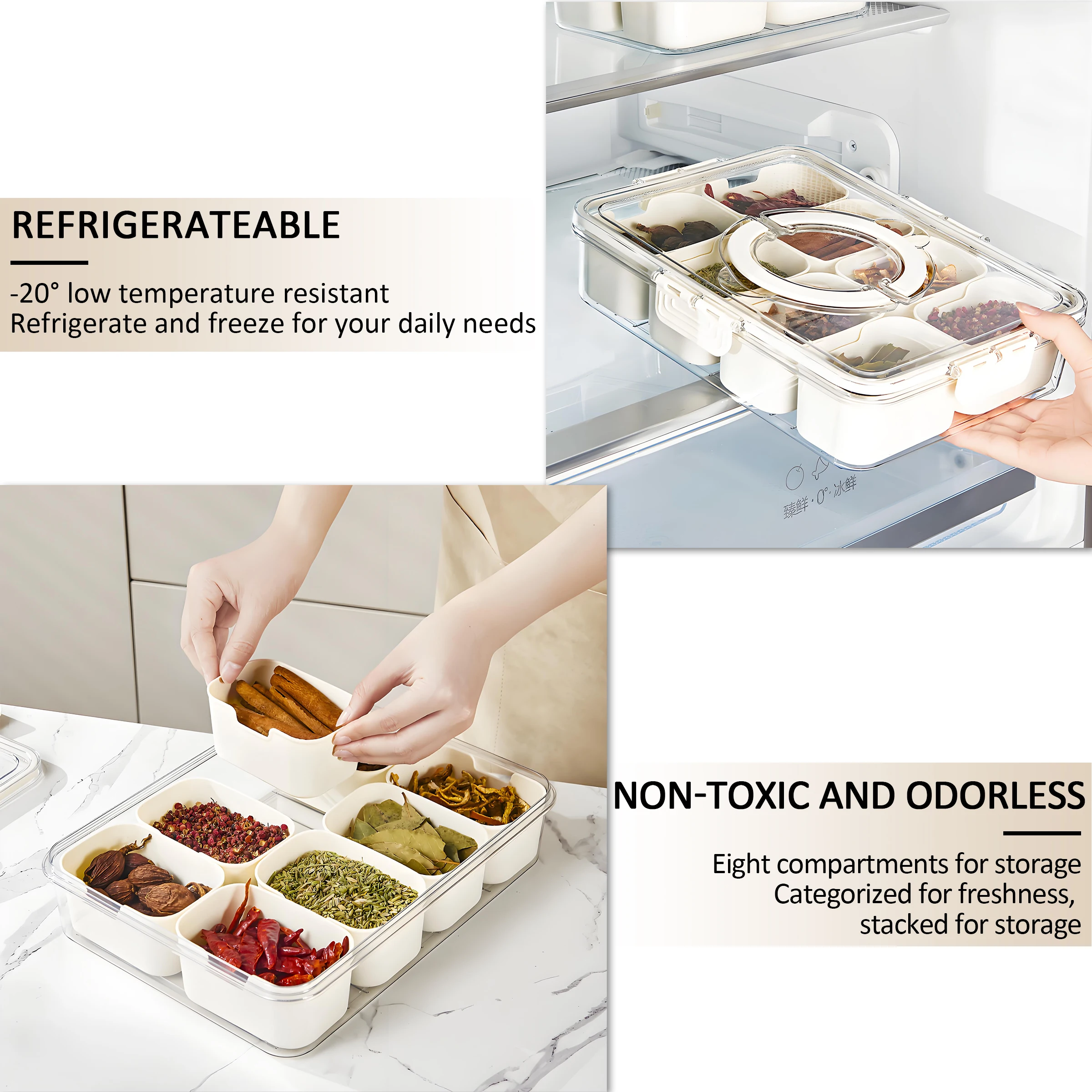 Hett produkt Bærbar 8-fag transparent snackskrue med plasttett faginndeling beholdere til kjøkkenbruk