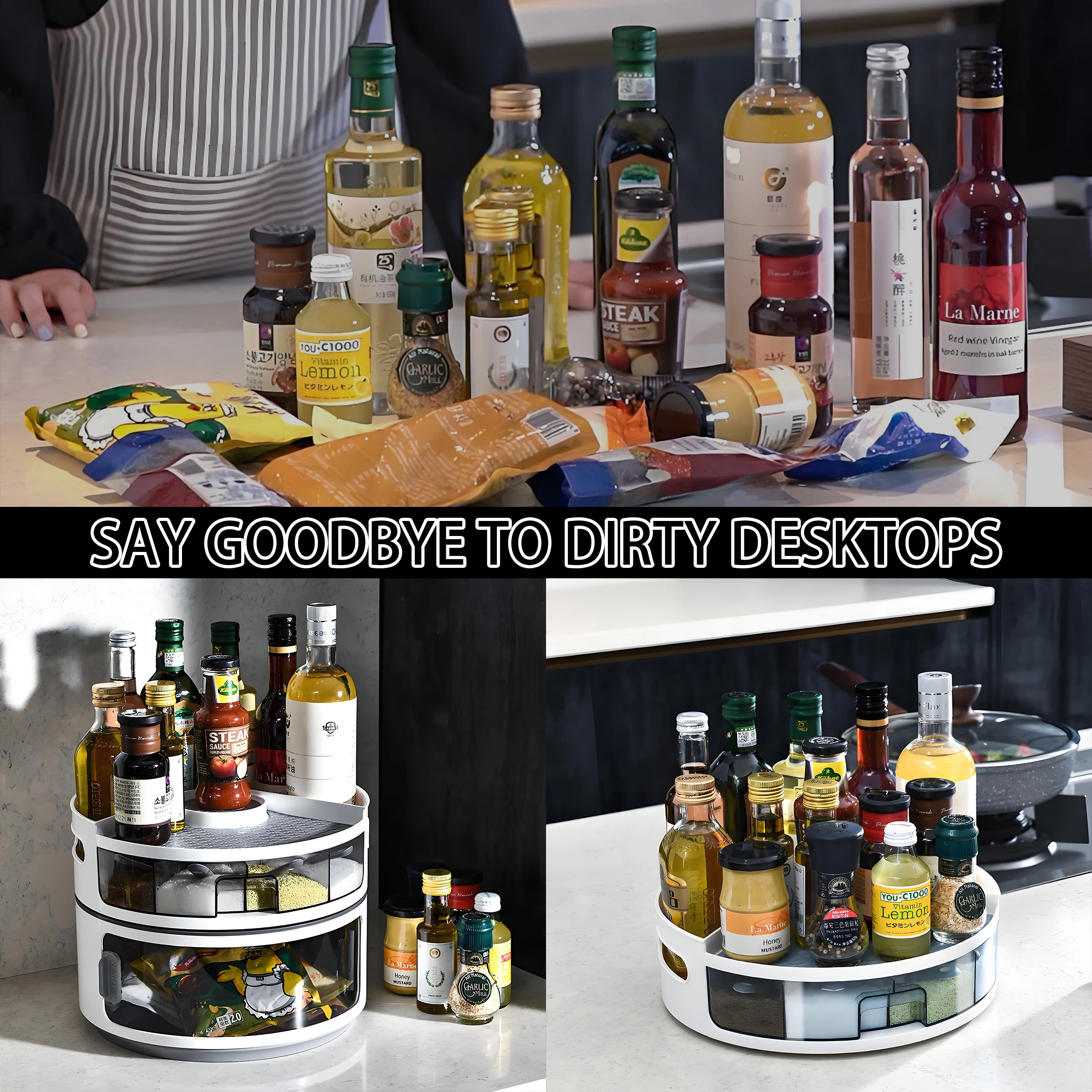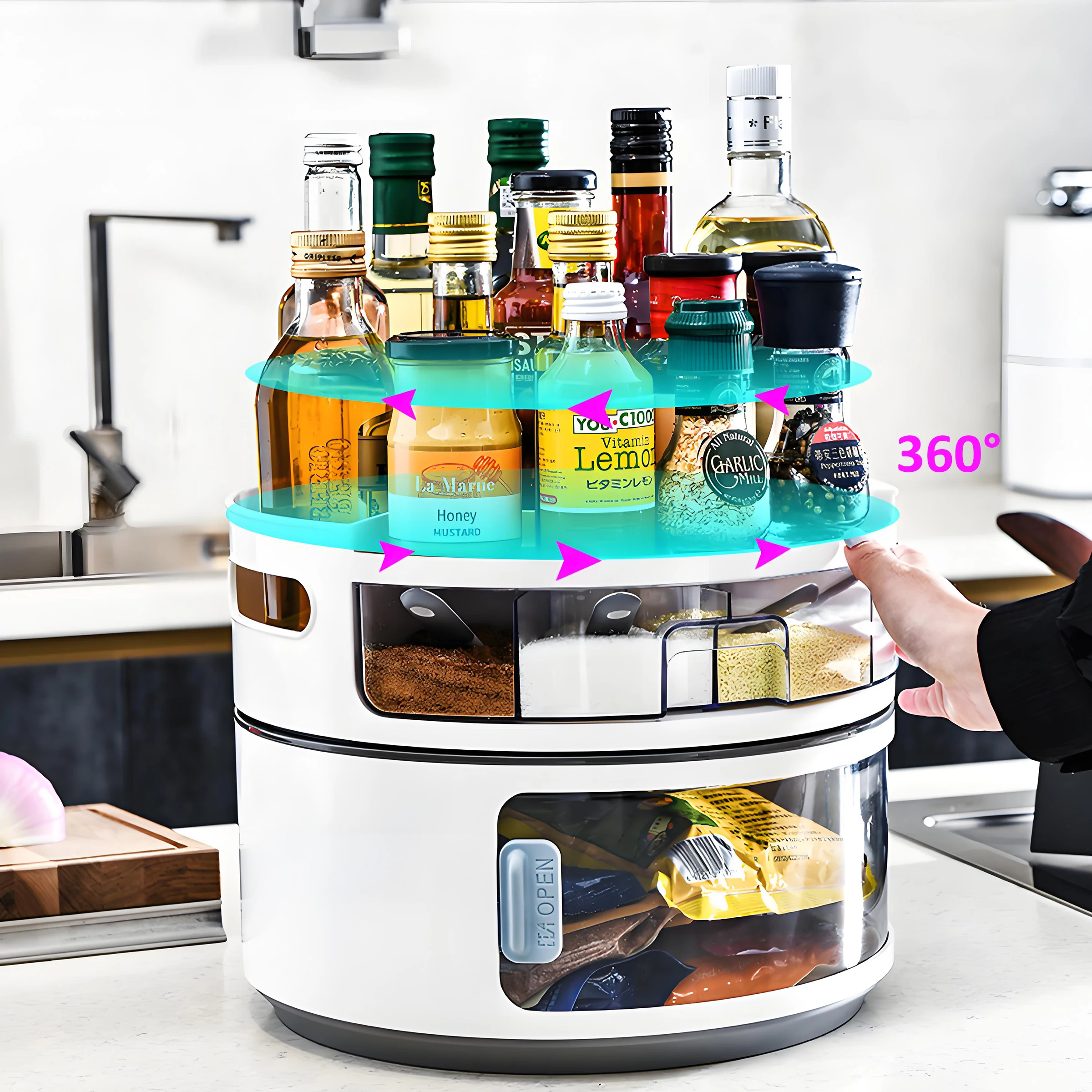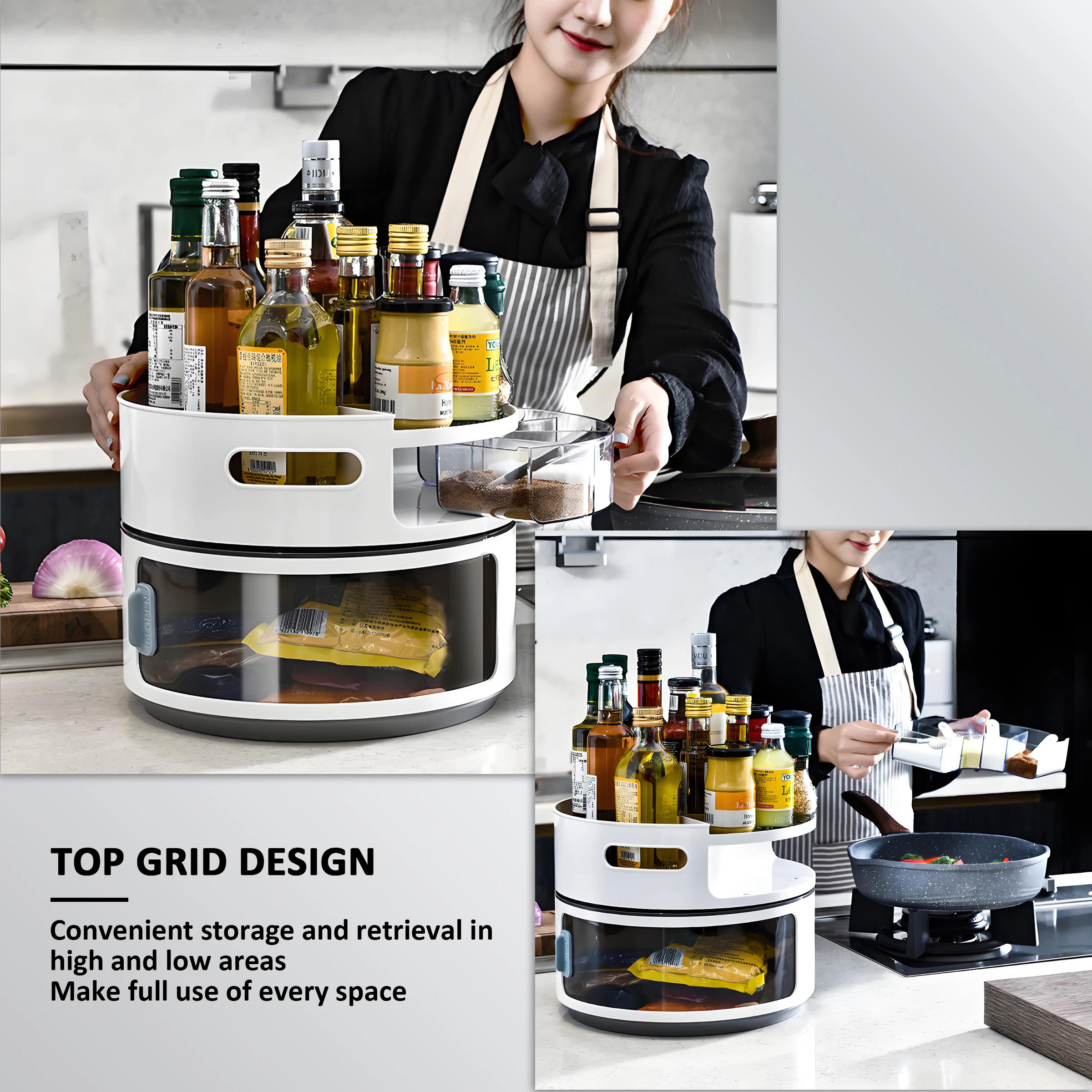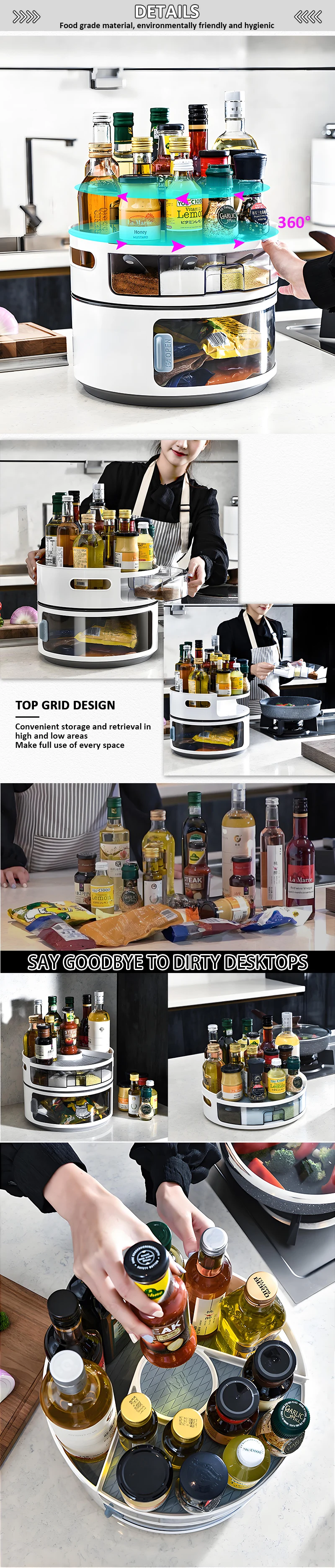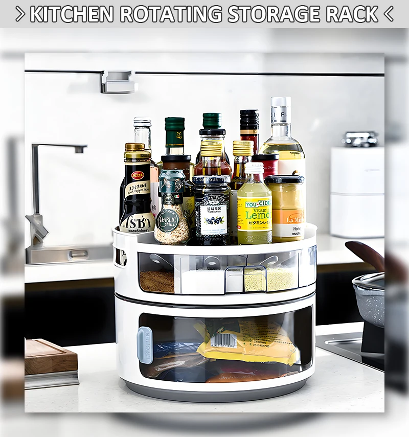 Såld dobbeltlags plastdreieskive til kjøkkenkrydder & kondimentopbevaring – miljøvennlig matbeholder