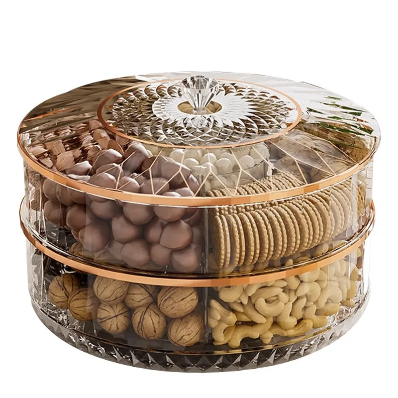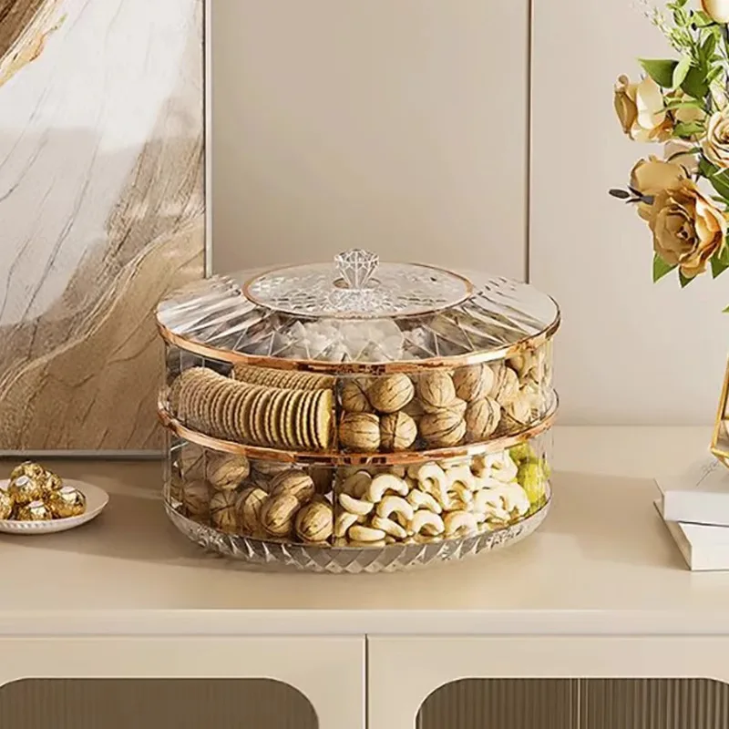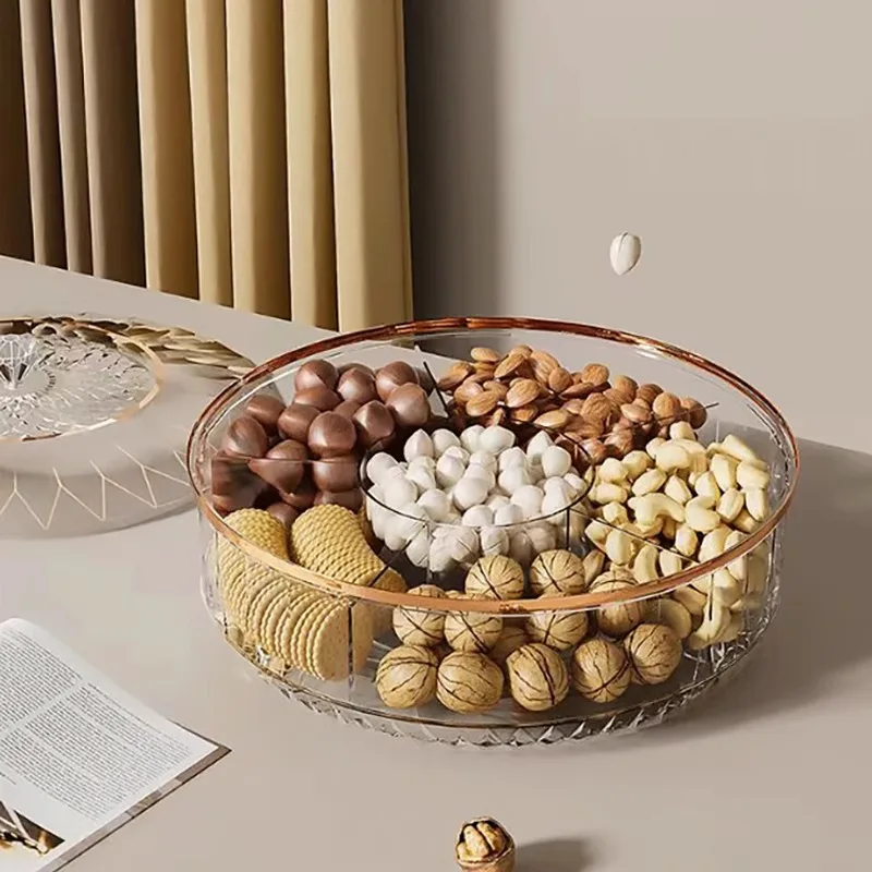 Japansk stil Lett luksuriøs krystallfruktskål Stue Kaffebord Roterende godteriboks Tørketfrukt boks Snack plate lagring