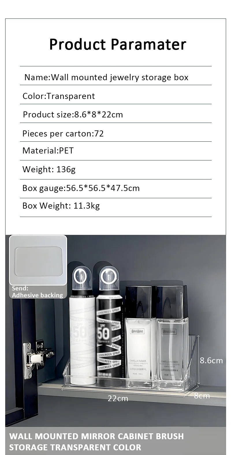 Promotingsprodukter Veggmontert Vertikal Transparent Plastboks Speilskab Organiser Badeskab