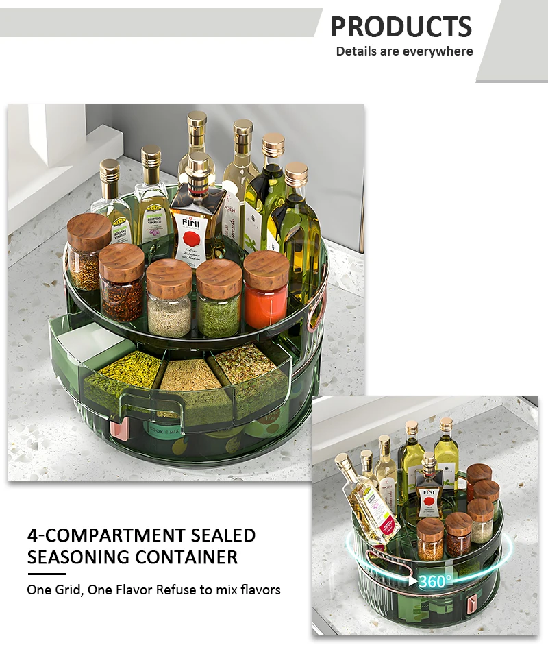 Roterende holder til krydder og tilbehør, roterende kjøkkenorganisatorisk lagringsboks, holder til kosmetikk til stuen, skrivebordsorganisator