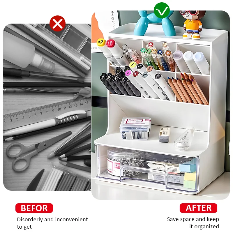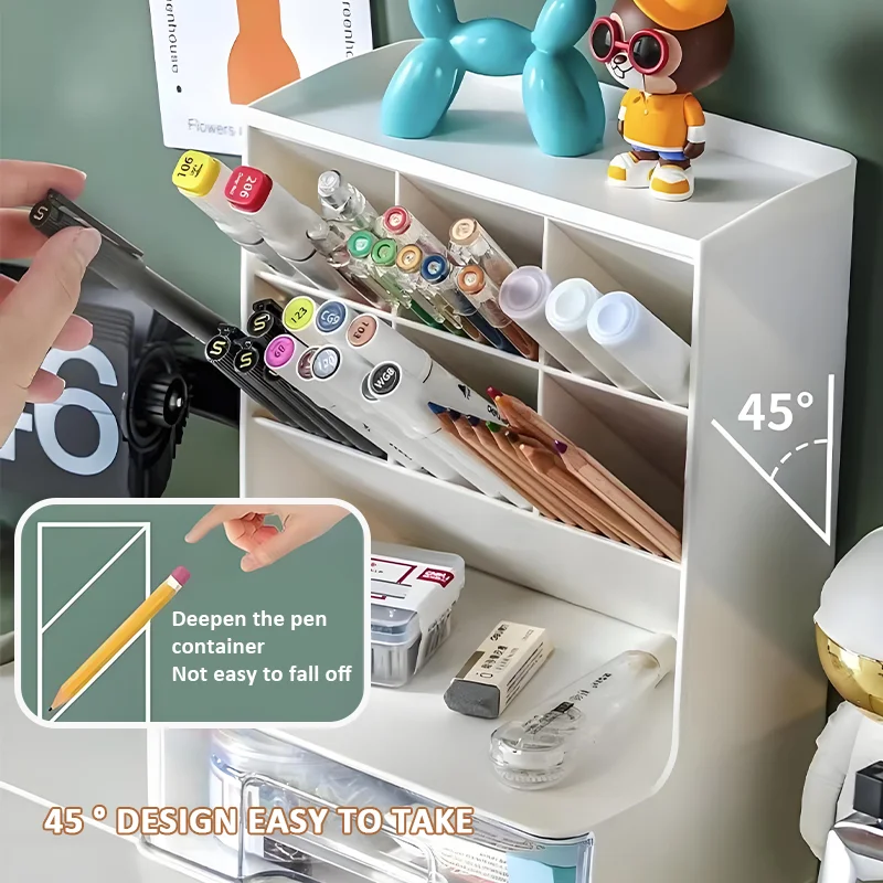 Skrå innsett pennholder Elever Barn kontorrekke flerfunksjonell skufforganisasjon Skrivebord kosmetikkorganisator