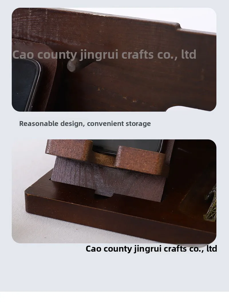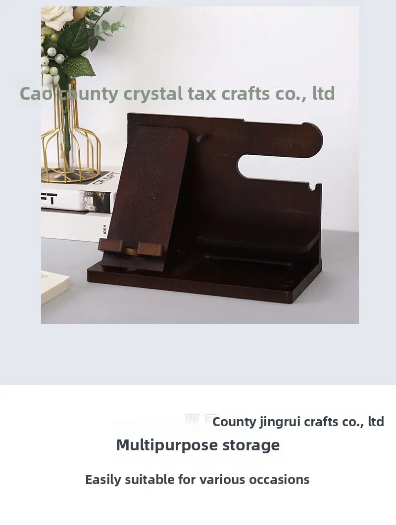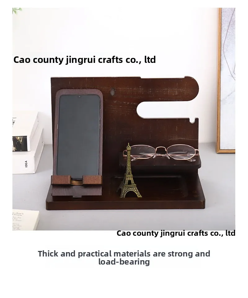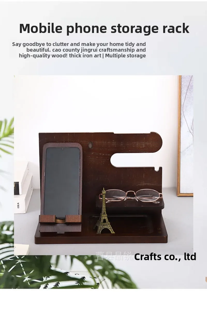 Lager Enkeltlaget Tre Telefonstativ Multifunksjonell Skrivebordsorganisator Ladeport Nøkkelopposetingsdokking for Stue