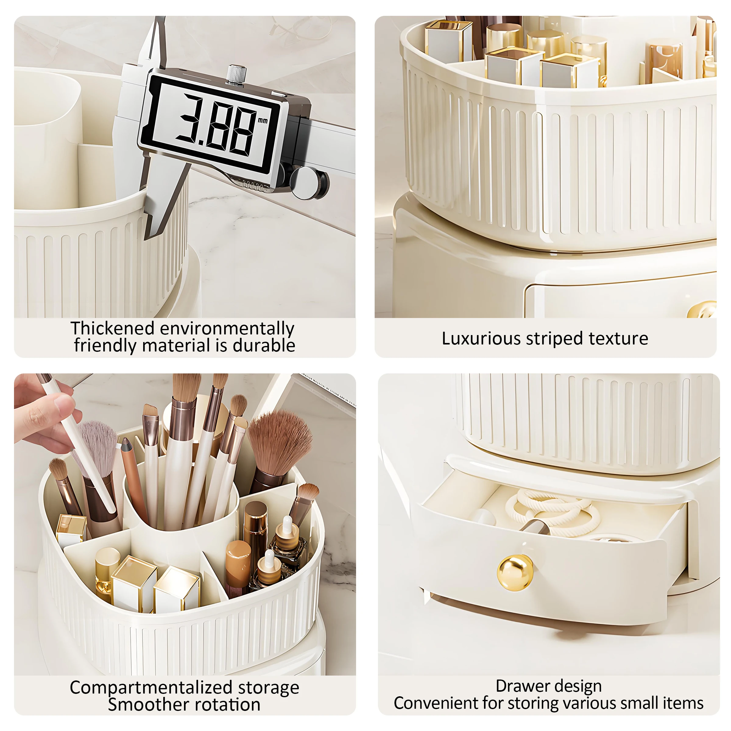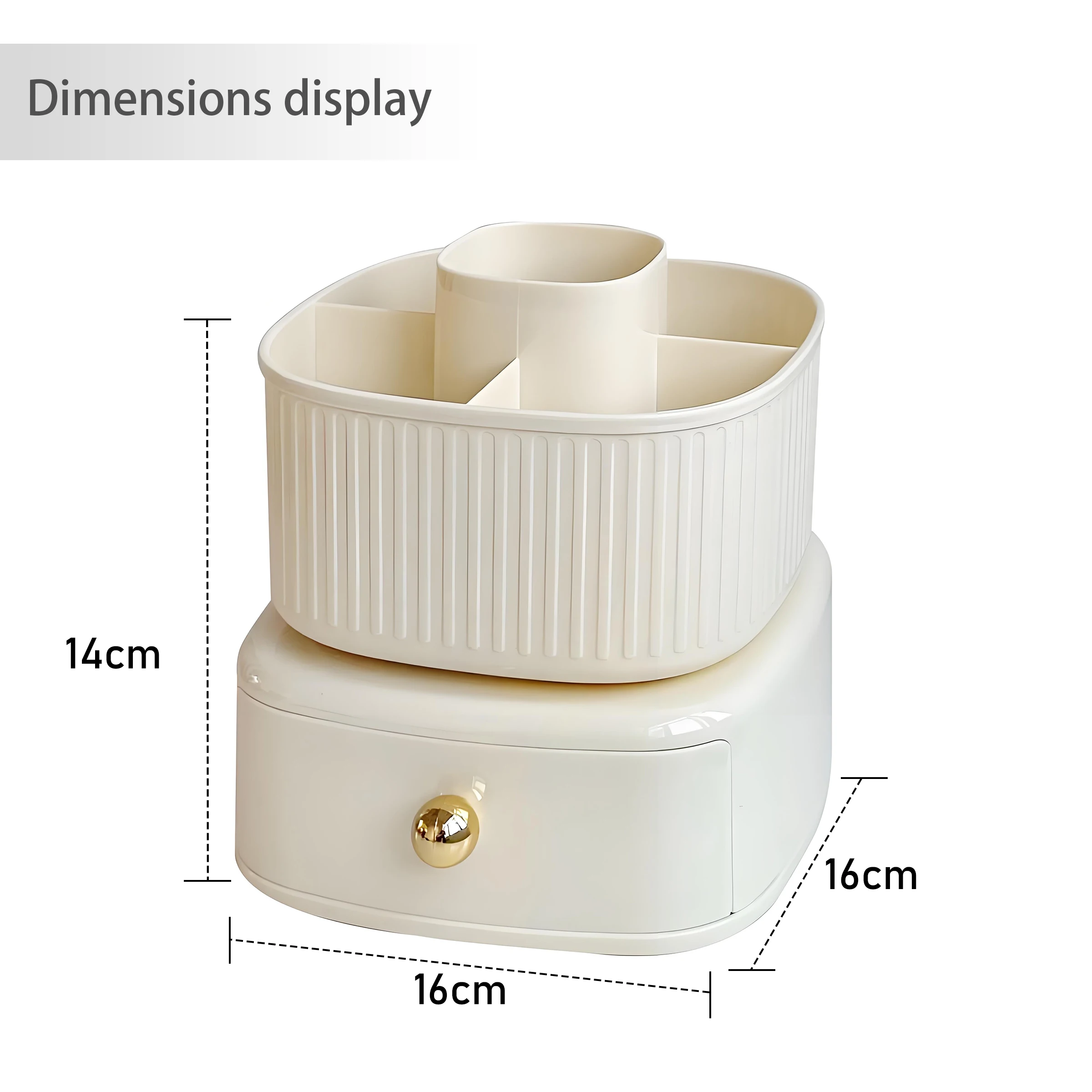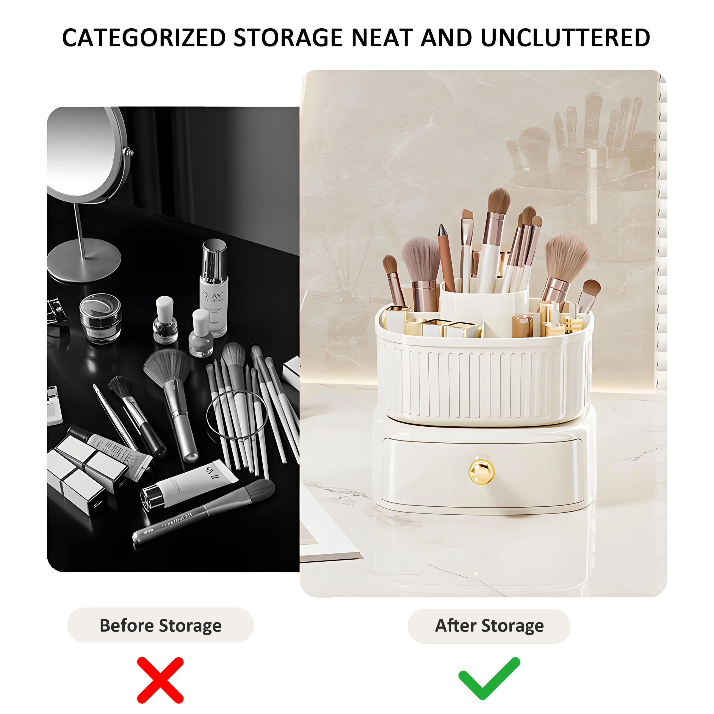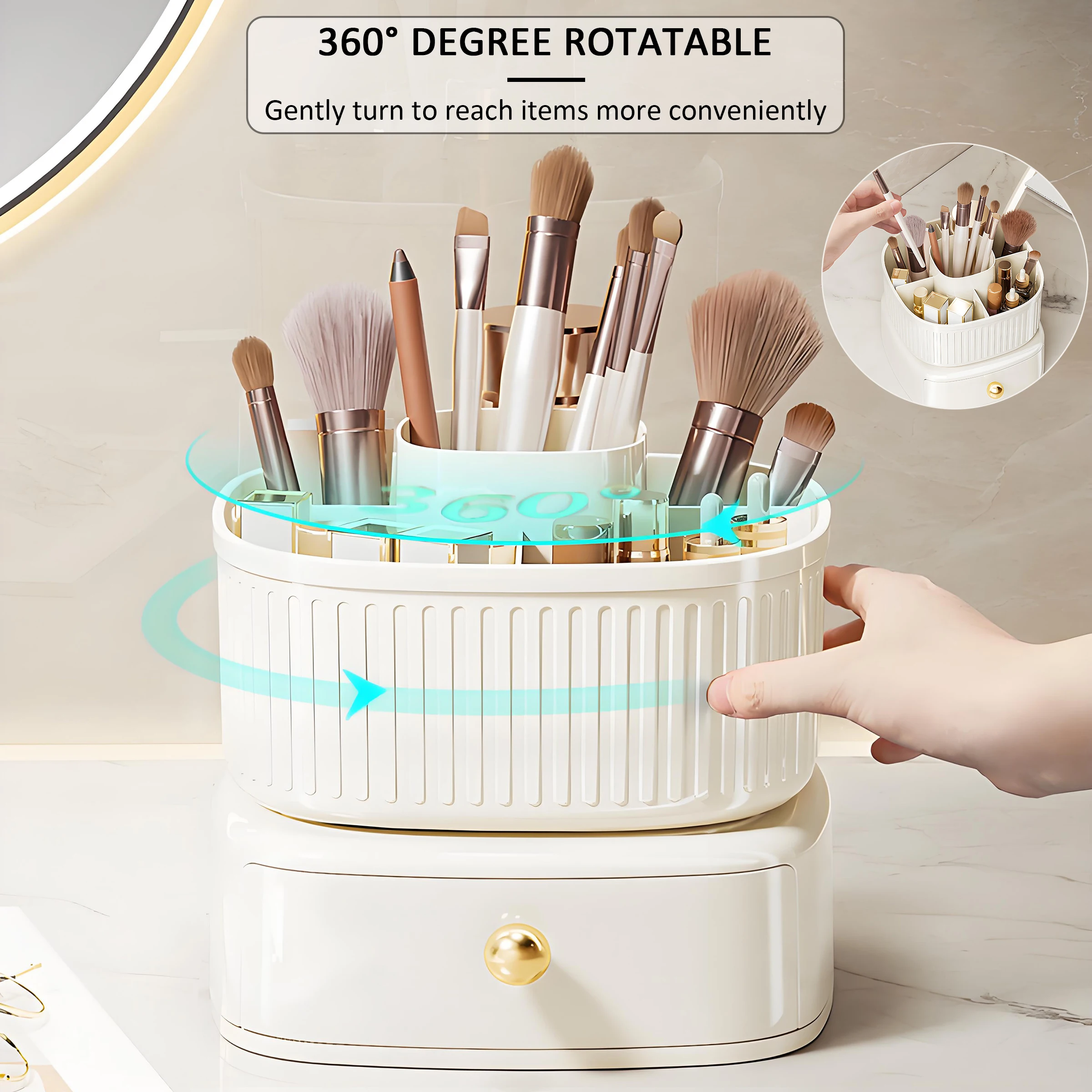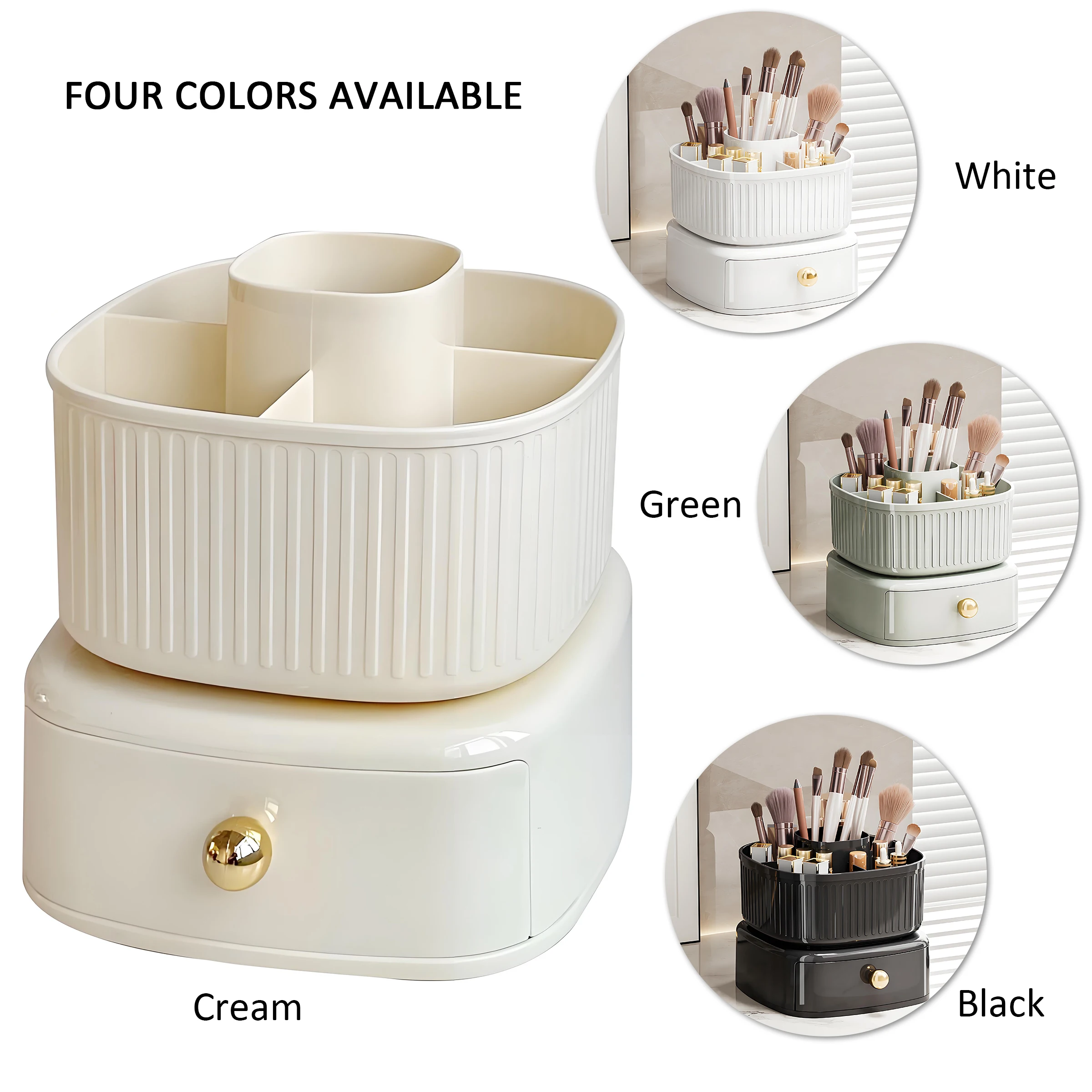 360 Degrees Rotating Makeup Brush Holder with Drawer Makeup Organizer Countertop Skincare Storage for Vanity Desktop Bathroom