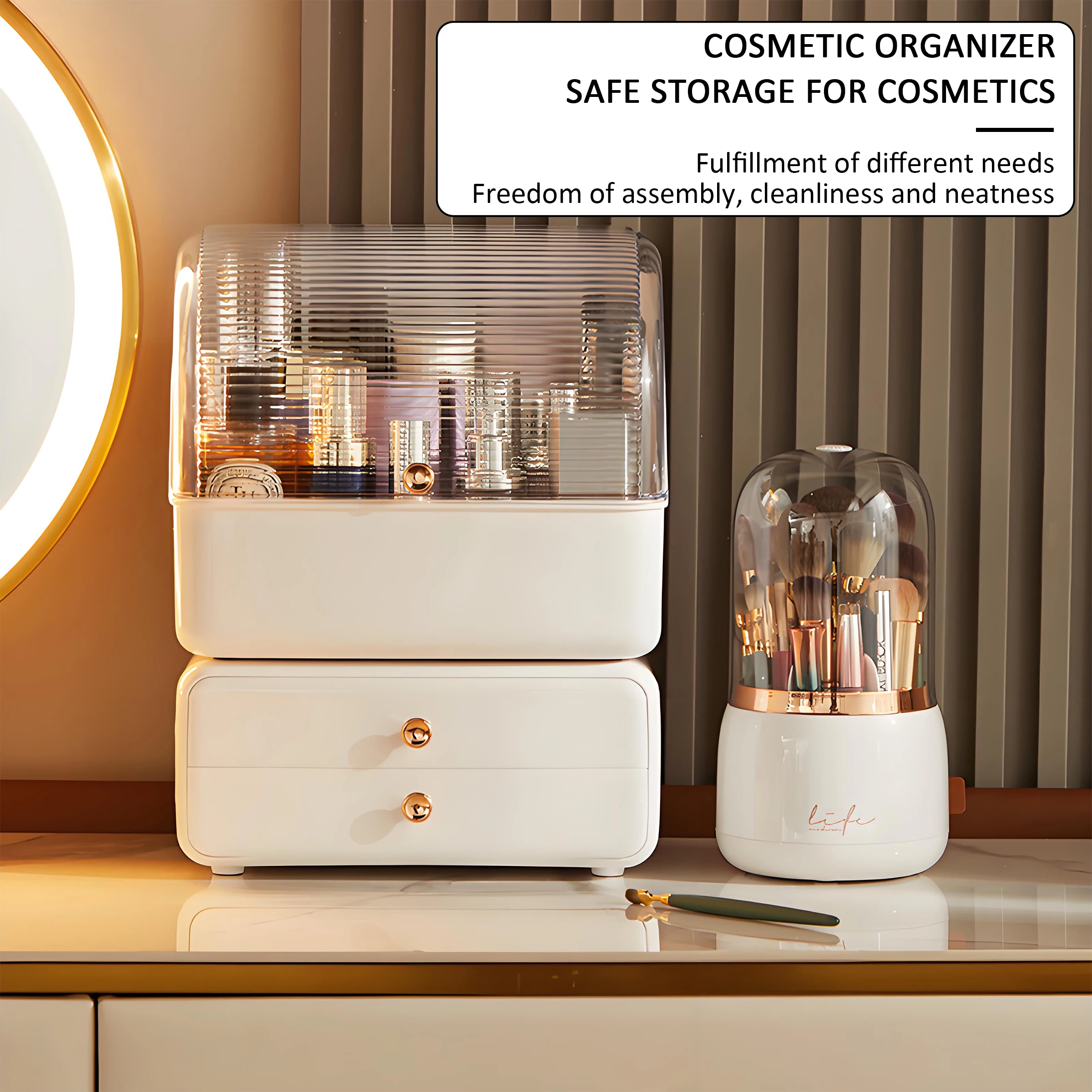 Countertop Makeup Organizer Skin Care Display Stand Dustproof Cosmetic Storage Box for Bathroom Bedroom Dresser Vanity