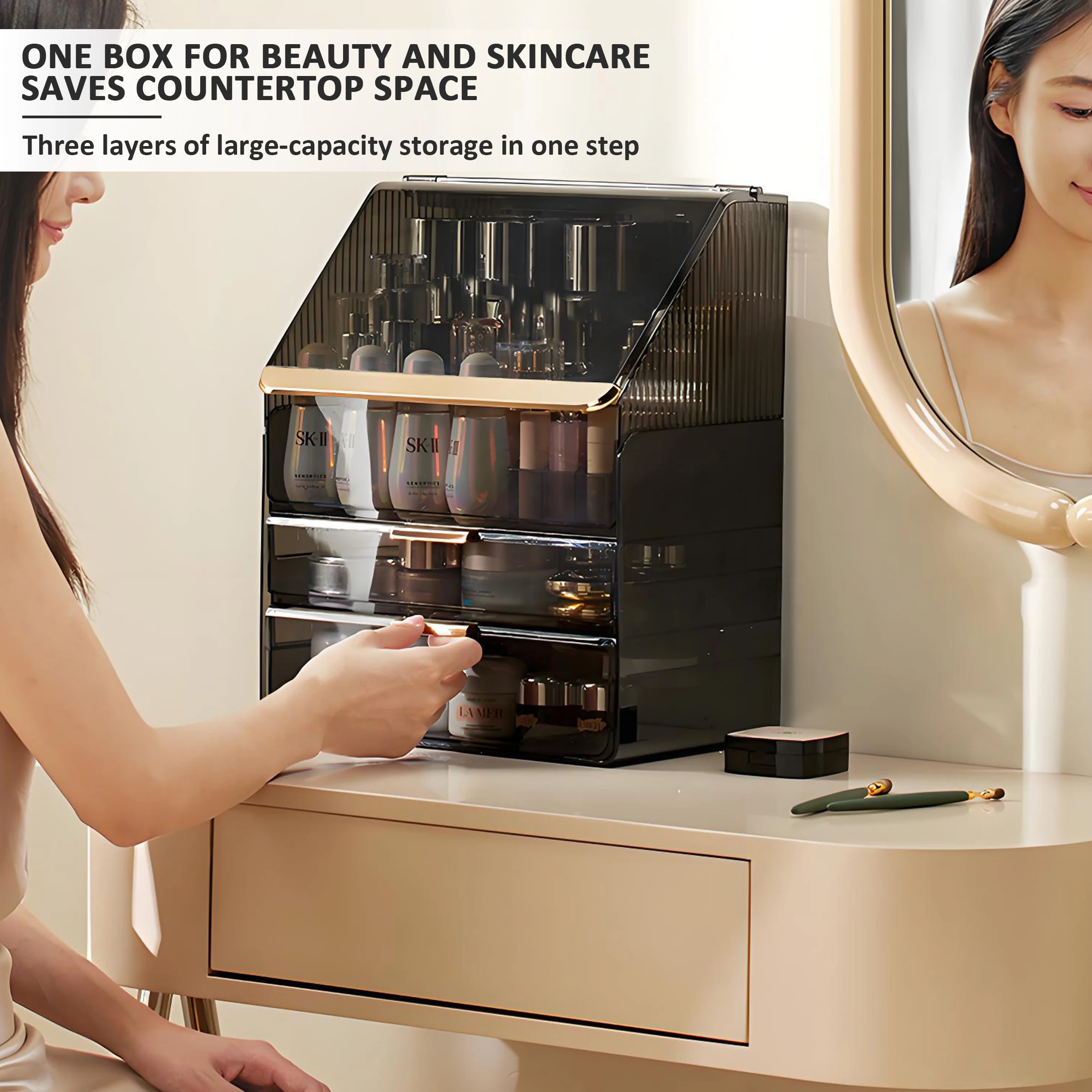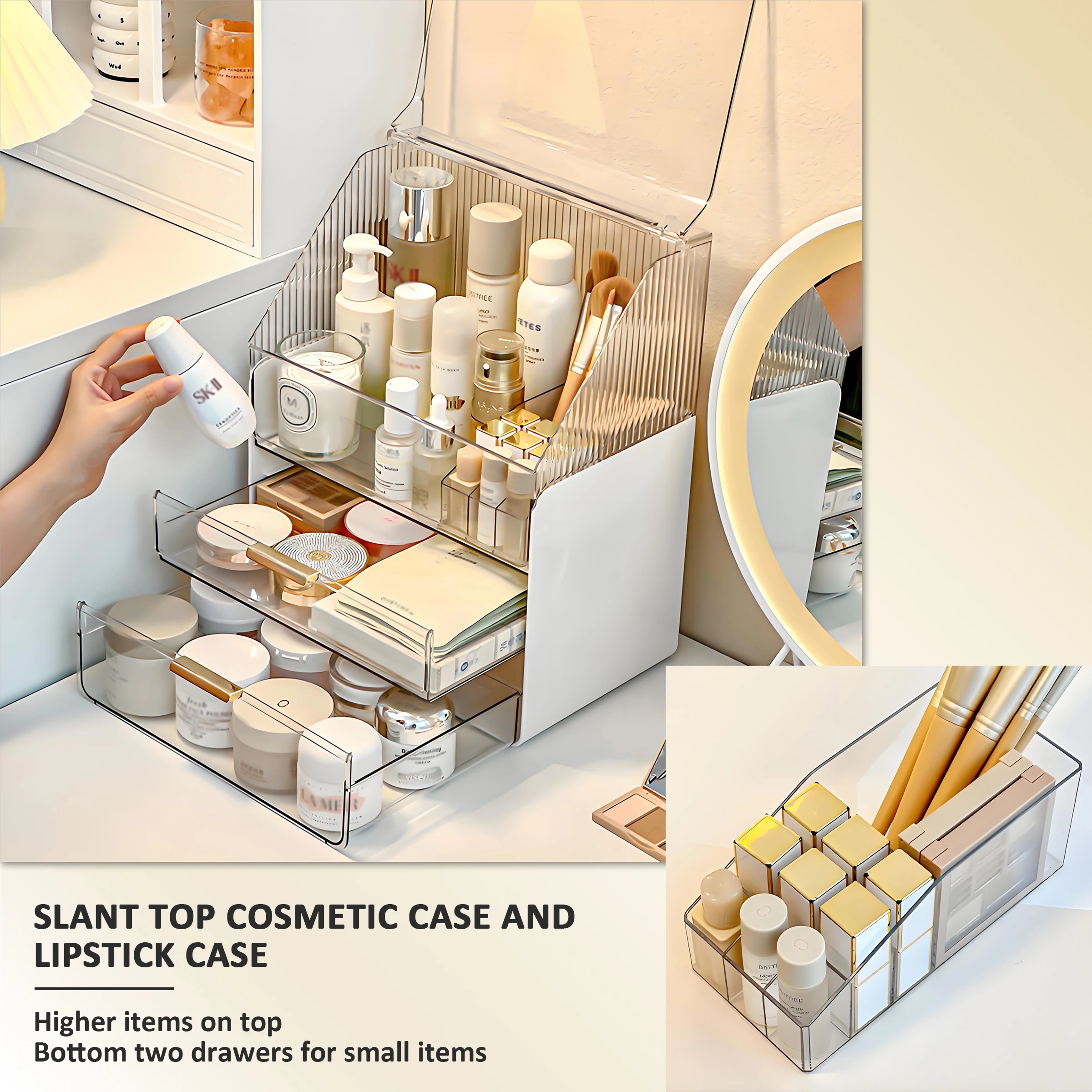 Desktop Cosmetics Storage Box Lipstick Sorting Shelf Light Luxury Dustproof Transparent Makeup Box