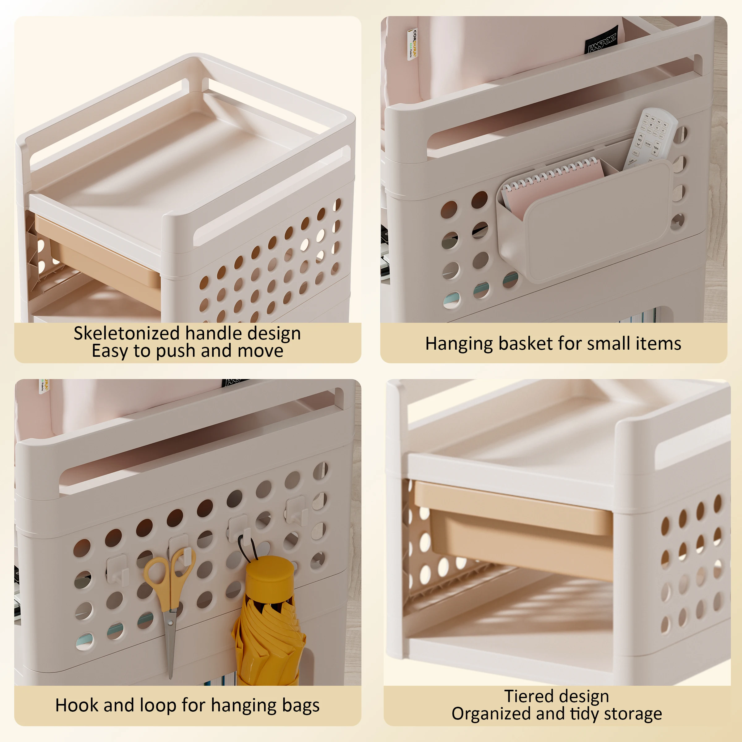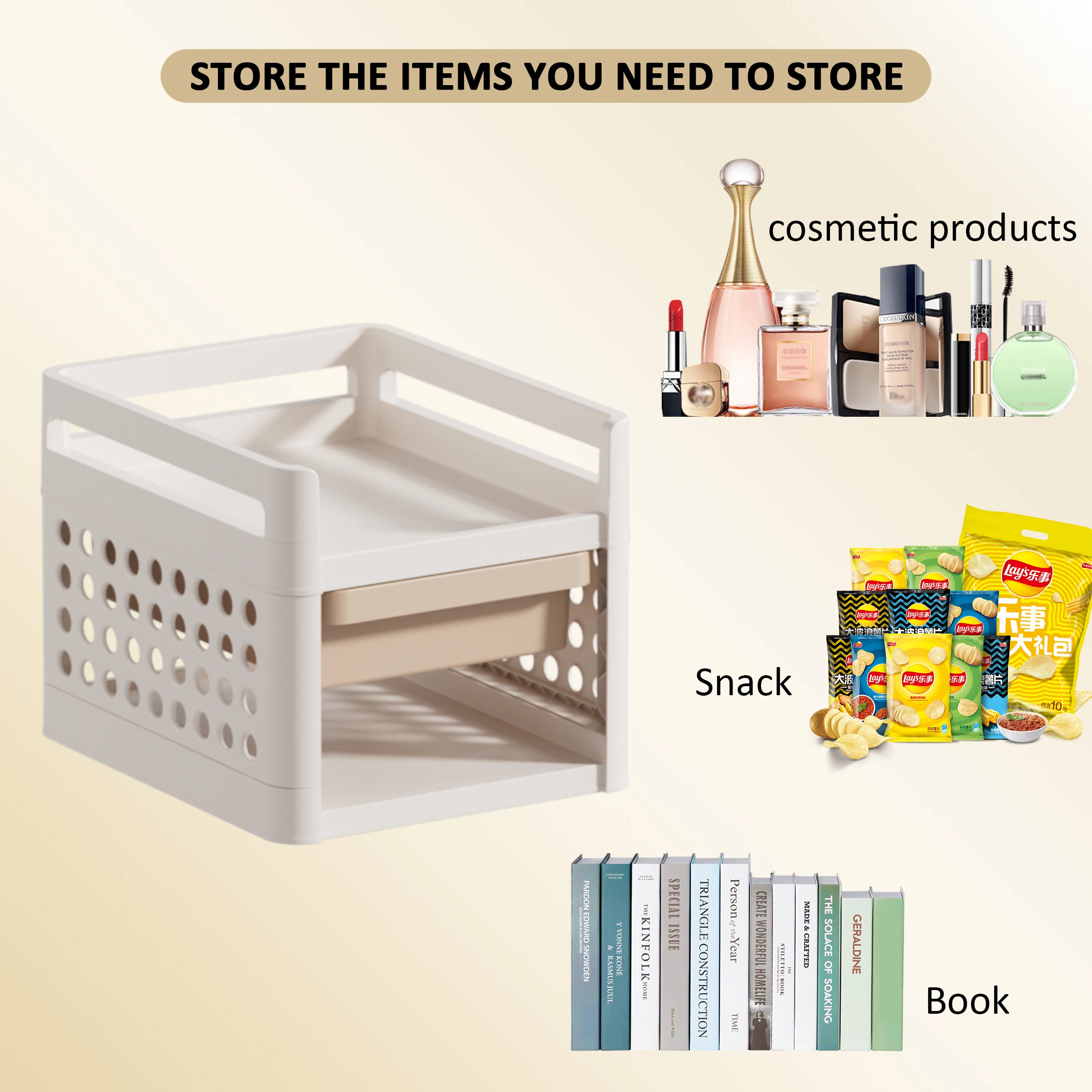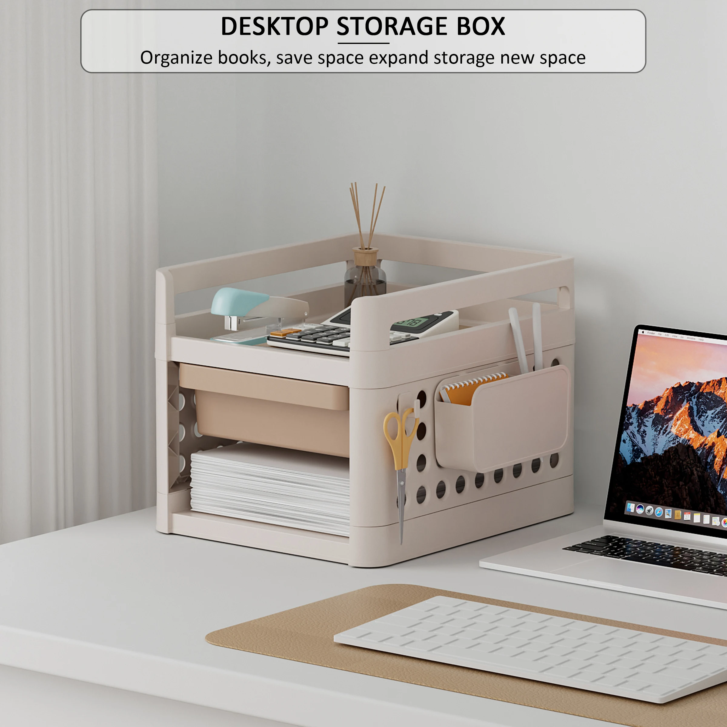 Double Desktop Storage Shelf Square PP Plastic for Office Stationery Cosmetics Kitchen Bathroom Organization Office Accessories
