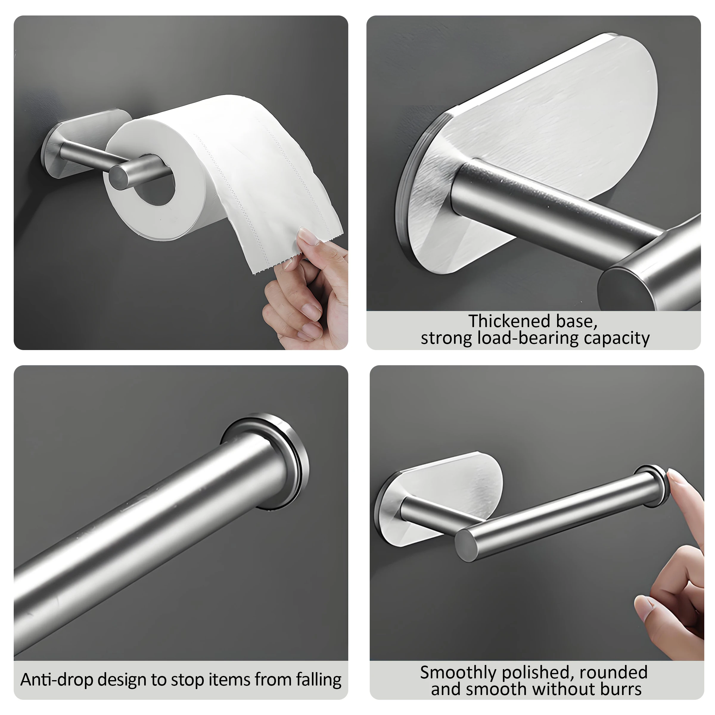 Hot Product Wall-Mounted Bathroom Hardware Set Self-Adhesive Stainless Steel Toilet Paper Holder Punch-Free Towel Rack Metal