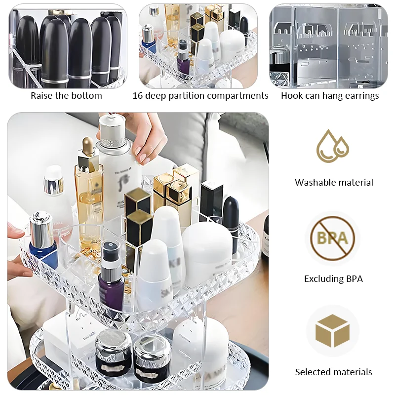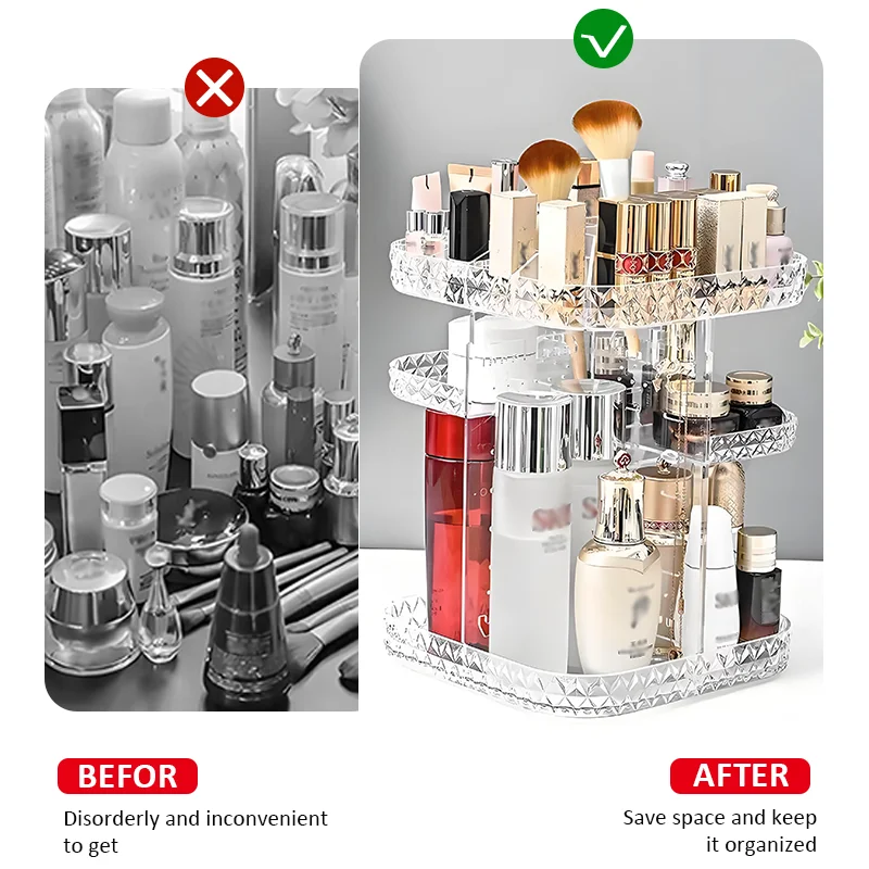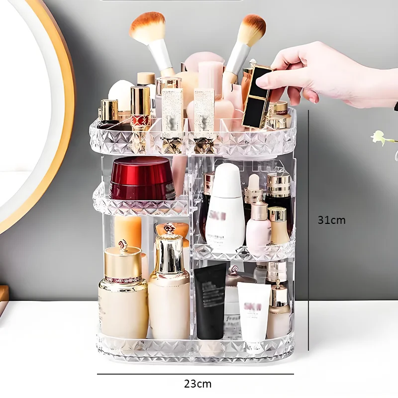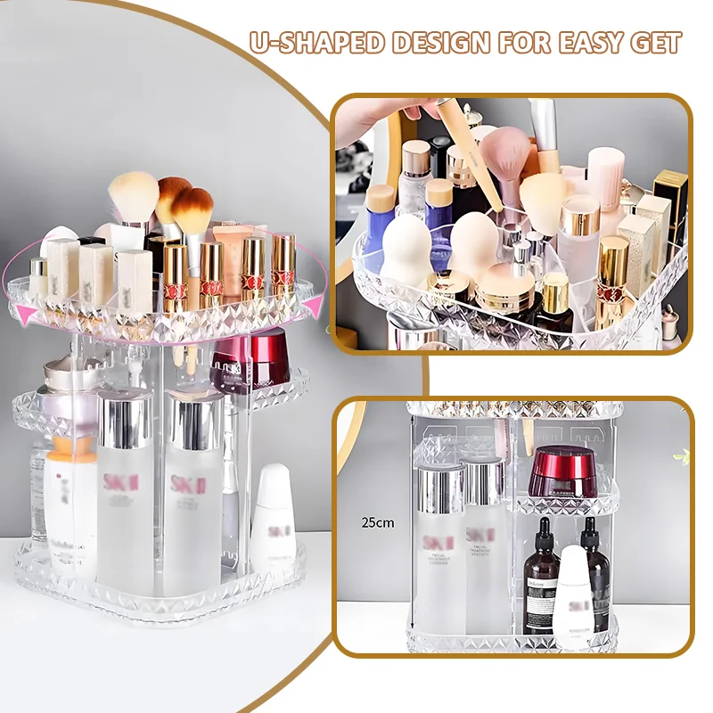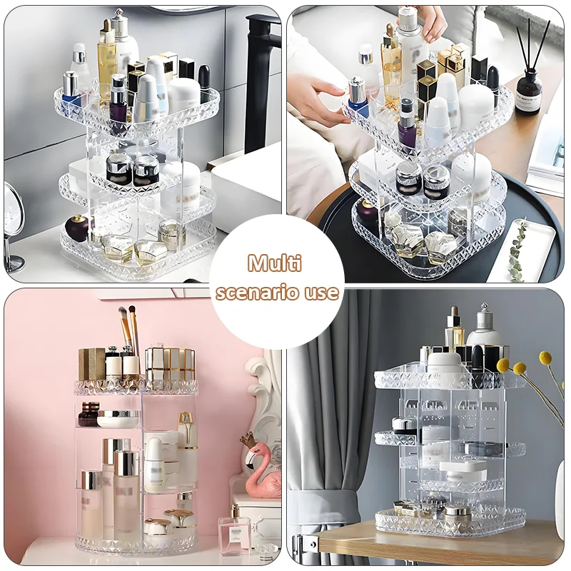 Hot Products Light Luxury 360 Degree Rotating Transparent Plastic Adjustable Cosmetic Organiser Rotating Make up Organiser