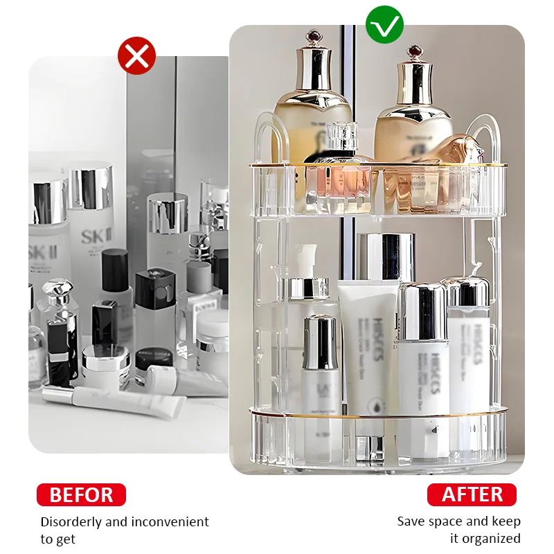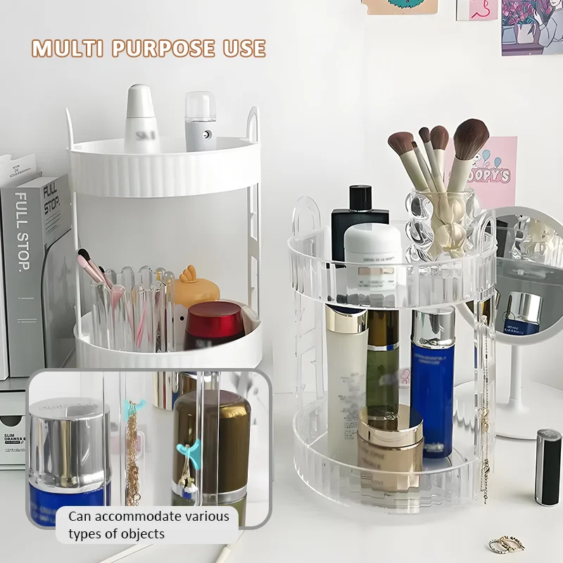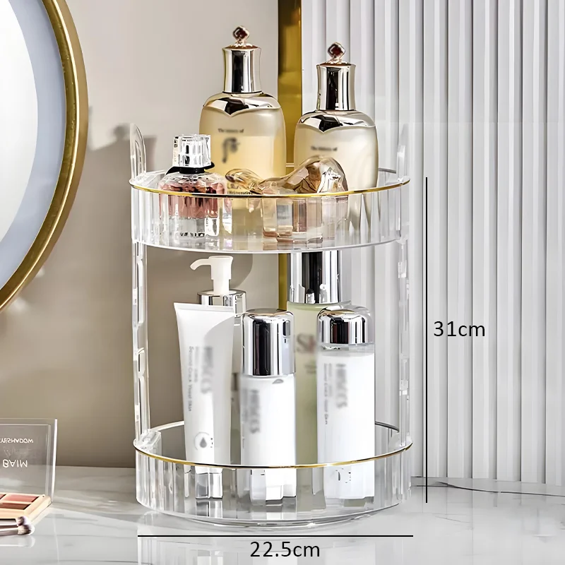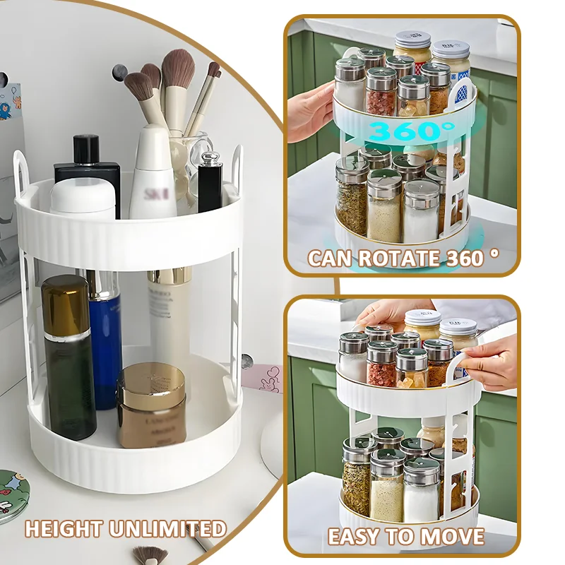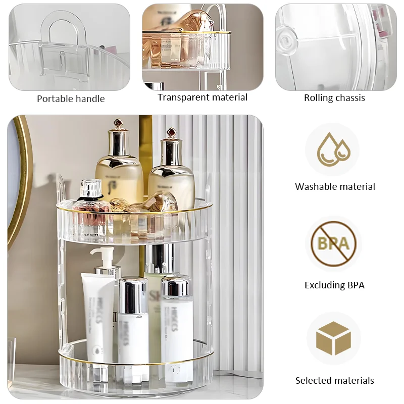 Hot Products Light Luxury Double Plastic with Carrying Handle 360 Degree Rotating Shelf Makeup Storage Storage Rack