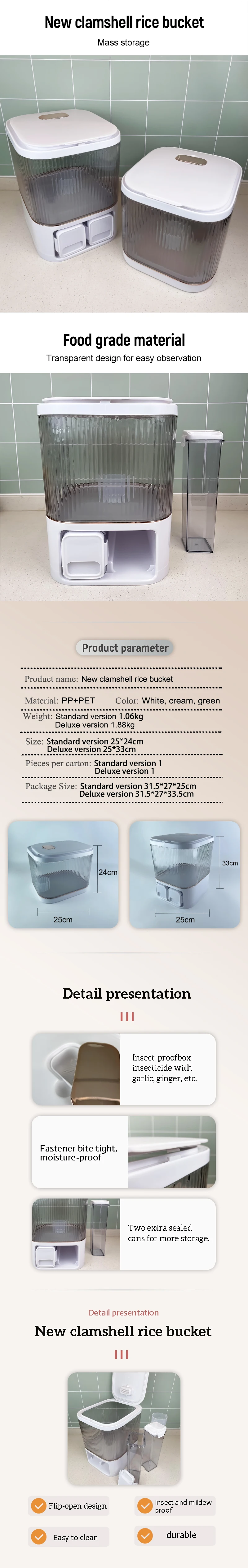 2024 Novo Balde para Arroz com Tampa Basculante em Plástico de Grau Alimentício Recipiente para Armazenamento de Alimentos com Tampa Basculante Caixa de Armazenamento para Cozinha à Prova de Umidade