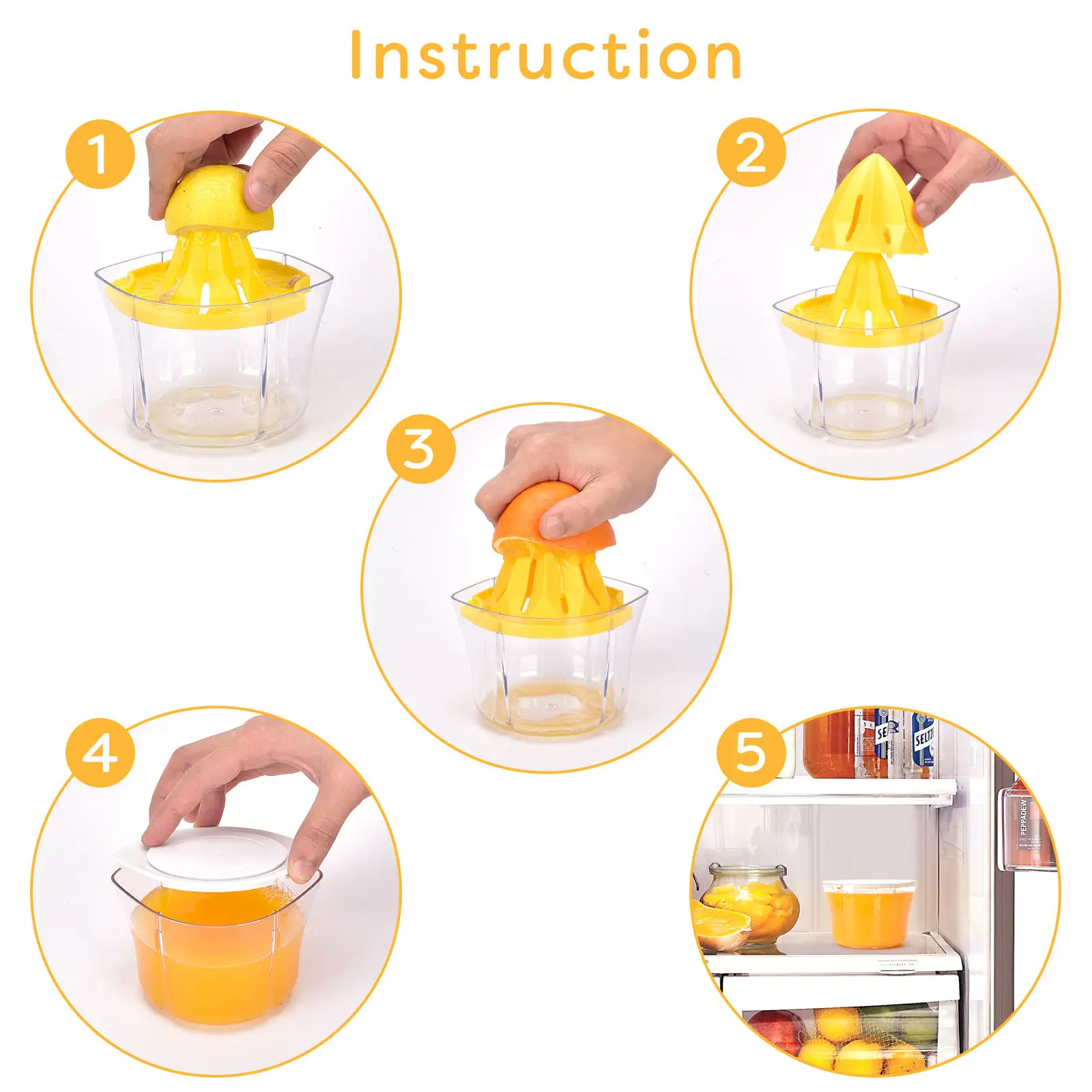 espremedor Manual de Frutas e Vegetais Multifuncional 5 em 1 em Plástico com Copo Medidor Transparente para Laranja e Limão Extrator de Suco Manual