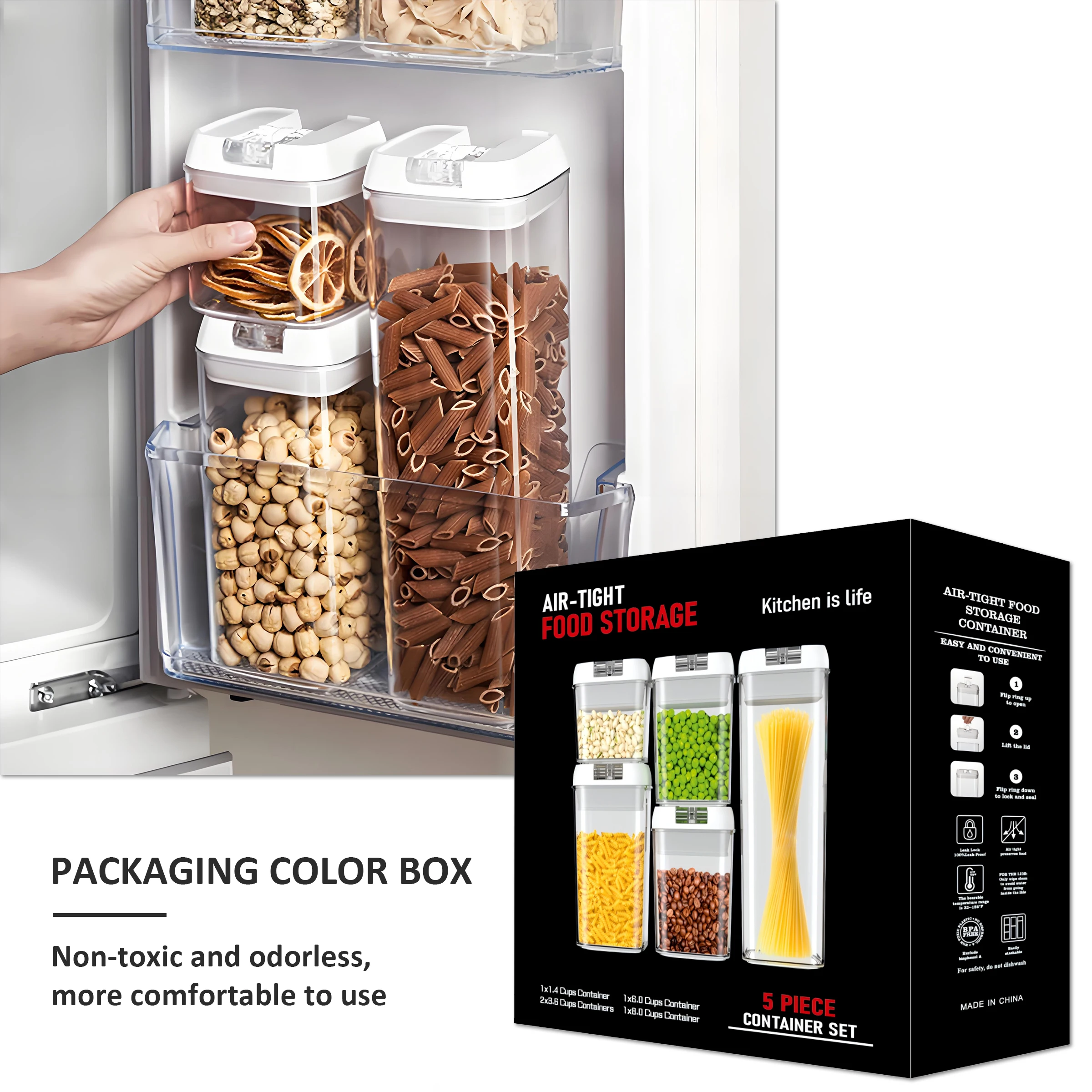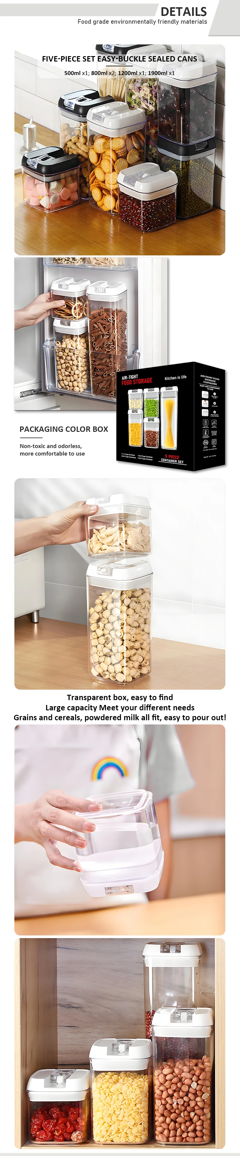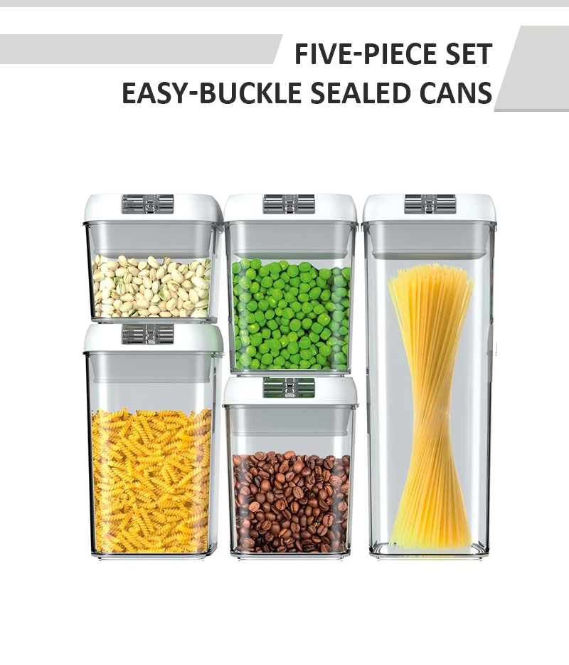 5Peças Mais Vendidos Recipientes Plásticos Transparentes com Vedação Aérea Contêineres para Armazenamento de Alimentos Secos Caixas e Recipientes para Armazenamento Doméstico e de Cozinha