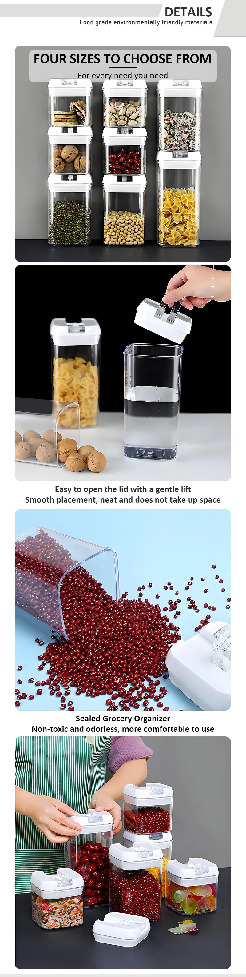 Venda Quente de Recipiente Reutilizável com Tampa de Silicone para Armazenamento de Alimentos Seguro para Micro-ondas Caixas Plásticas para Armazenamento na Cozinha Organização de Grãos para Micro-ondas