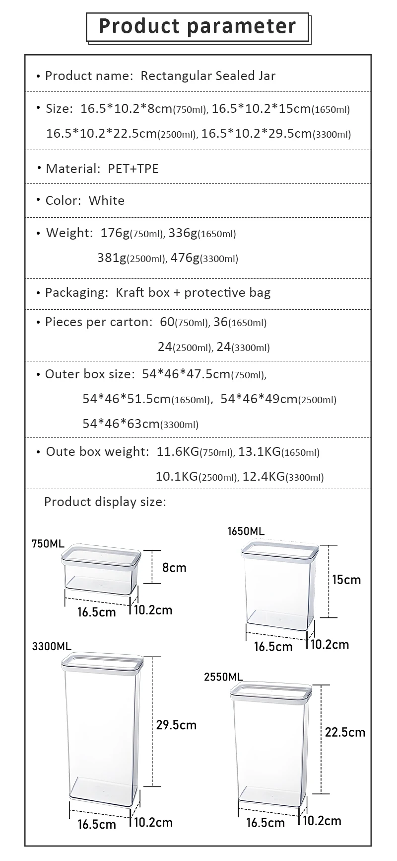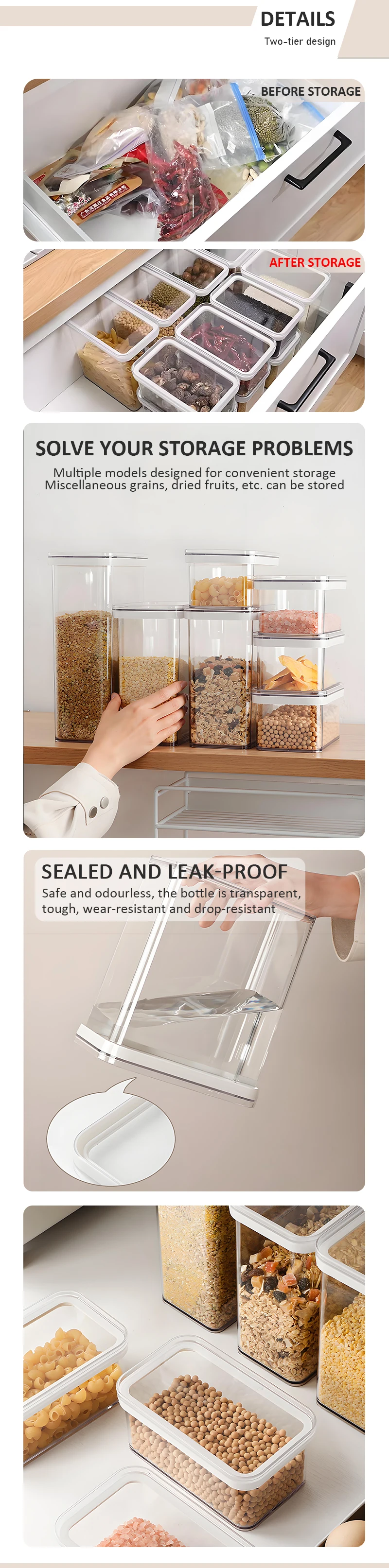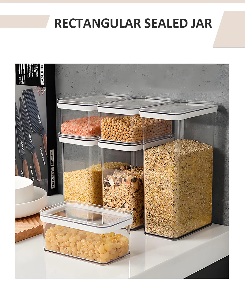 Caixa de Armazenamento de Alimentos Secos com Grande Capacidade e Hermeticamente Fechada Plástico Quente Organizador de Cozinha para Armazenamento de Alimentos e Recipiente