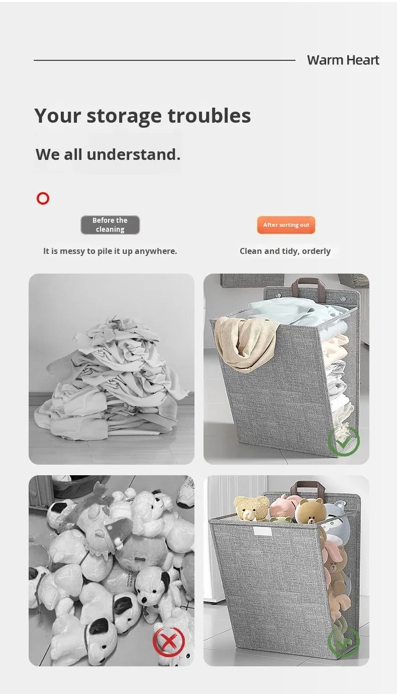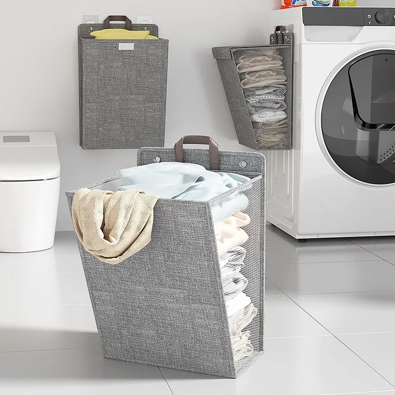 Cesta de Armazenamento de Grande Capacidade, Ecológica, Moderna, em Linho, Malha Respirável, Dobrável, Portátil e Conveniente para Roupas, Roupa Íntima e Meias