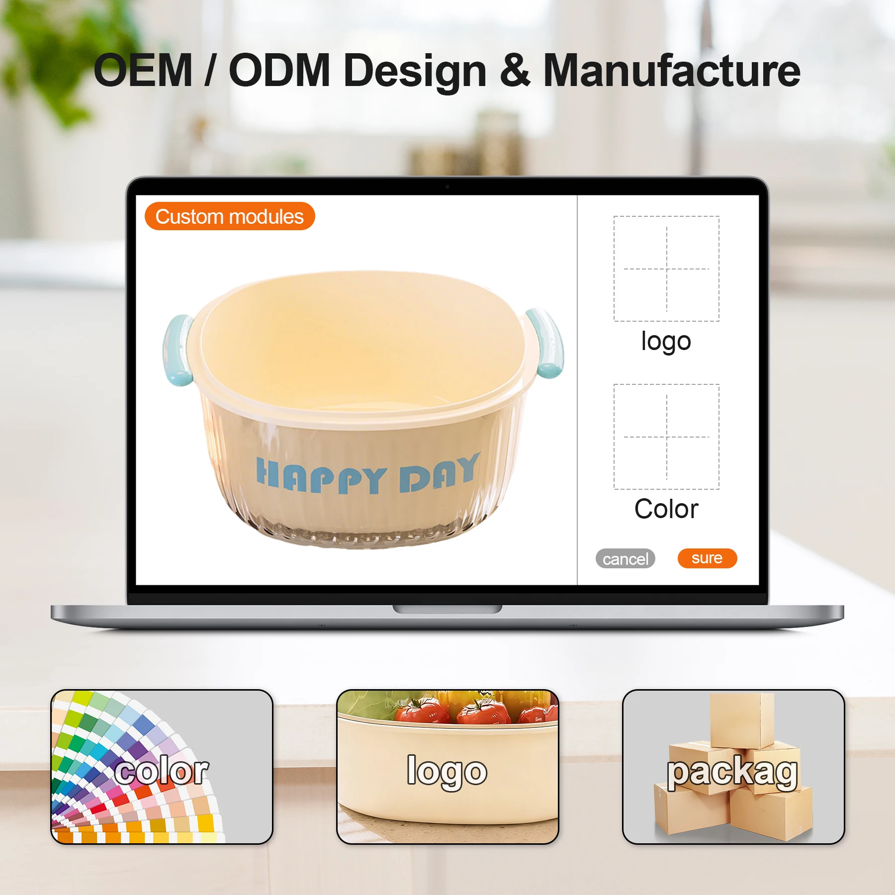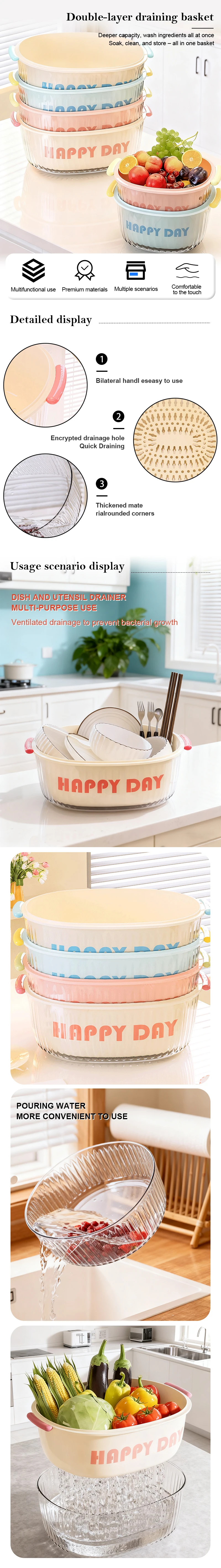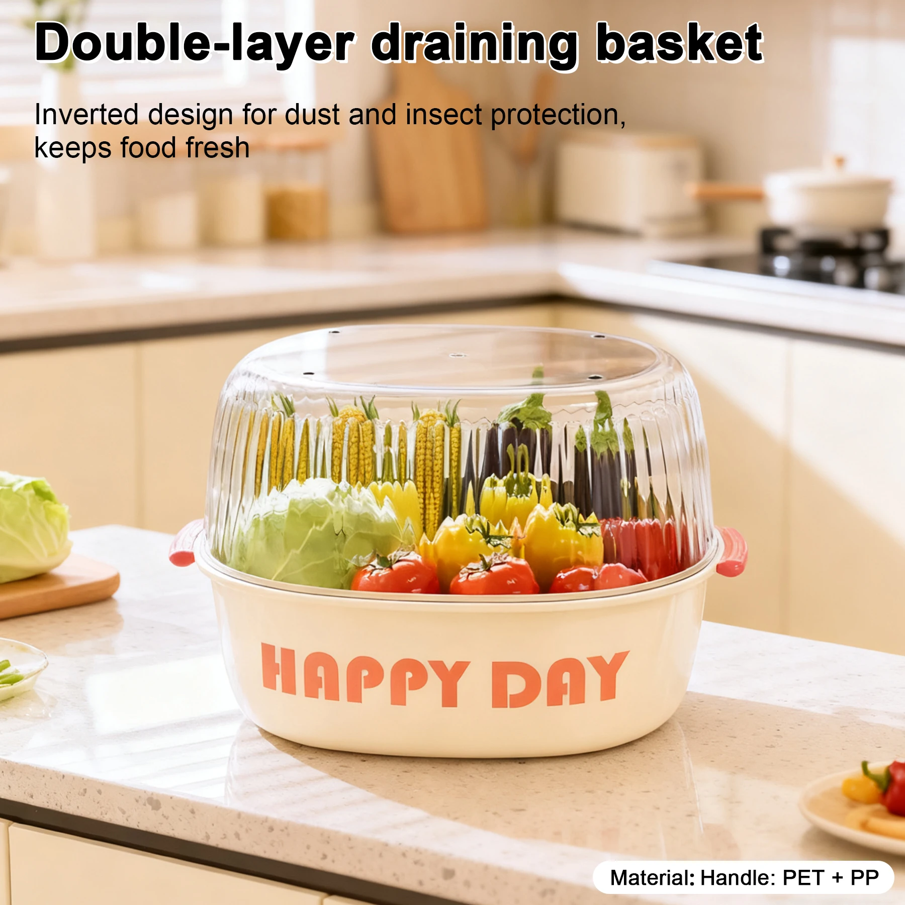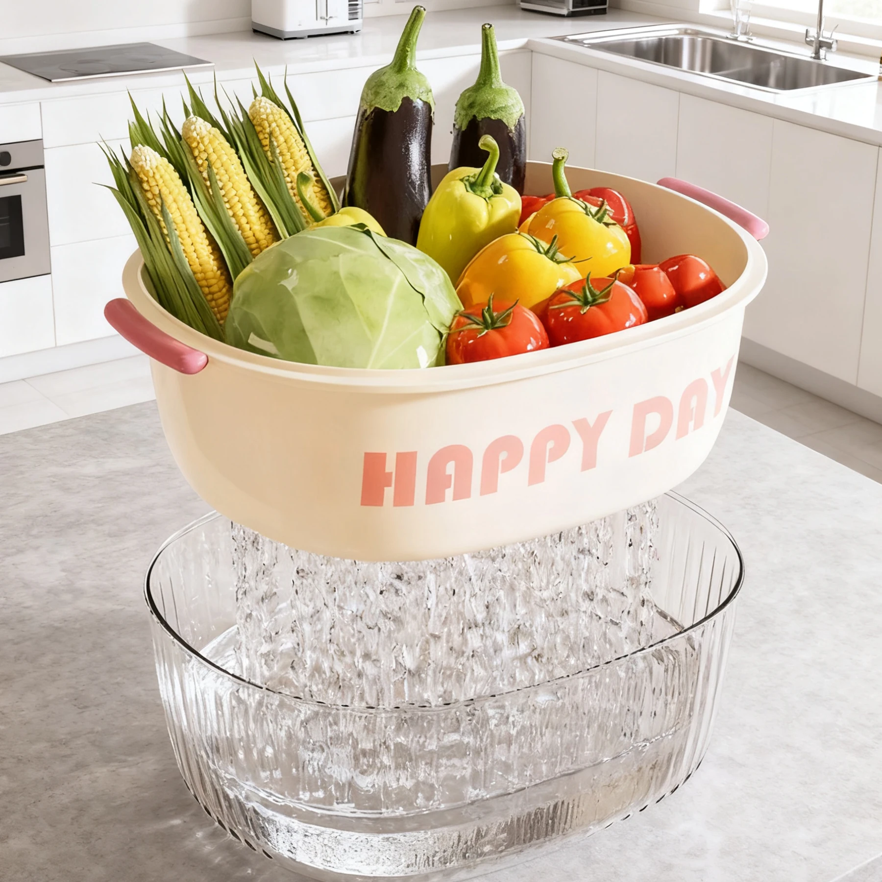 Cesta de Armazenamento para Cozinha com Estrutura de Plástico PP de Dupla Camada de Grande Porte, com Design Furado e Função de Escorrimento para Lavar Legumes e Frutas