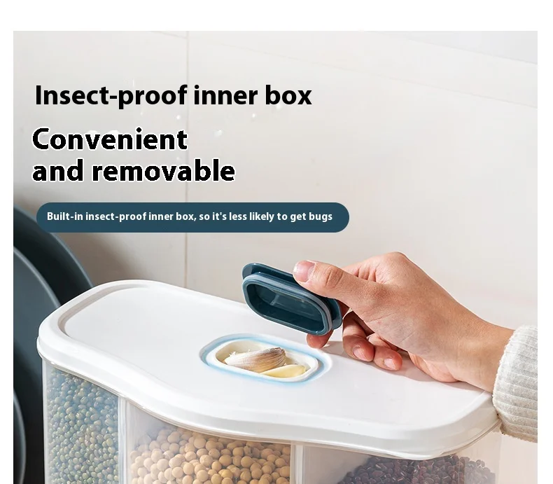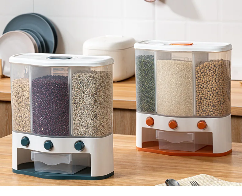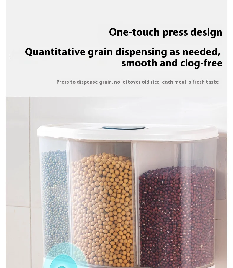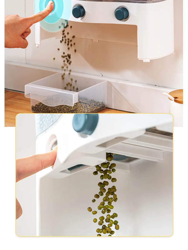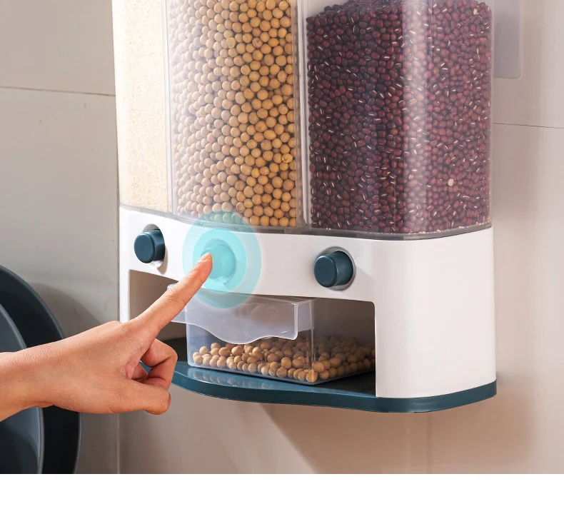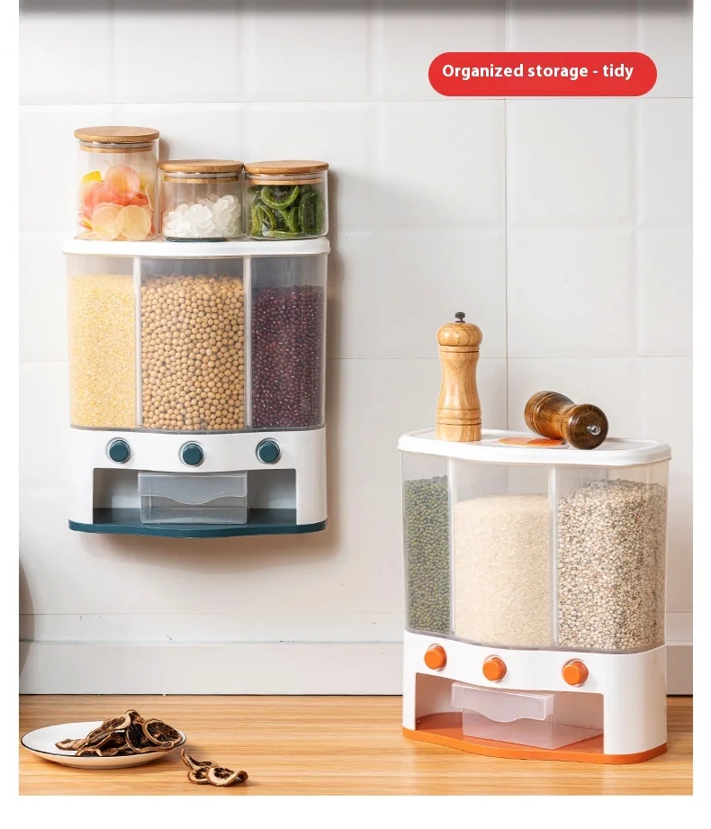 Luxo Leve Design Moderno Recipiente Plástico para Arroz com Múltiplos Compartimentos Montado na Parede para Armazenamento de Grãos e Alimentos com Tampa Hermeticamente Fechada