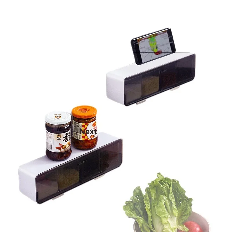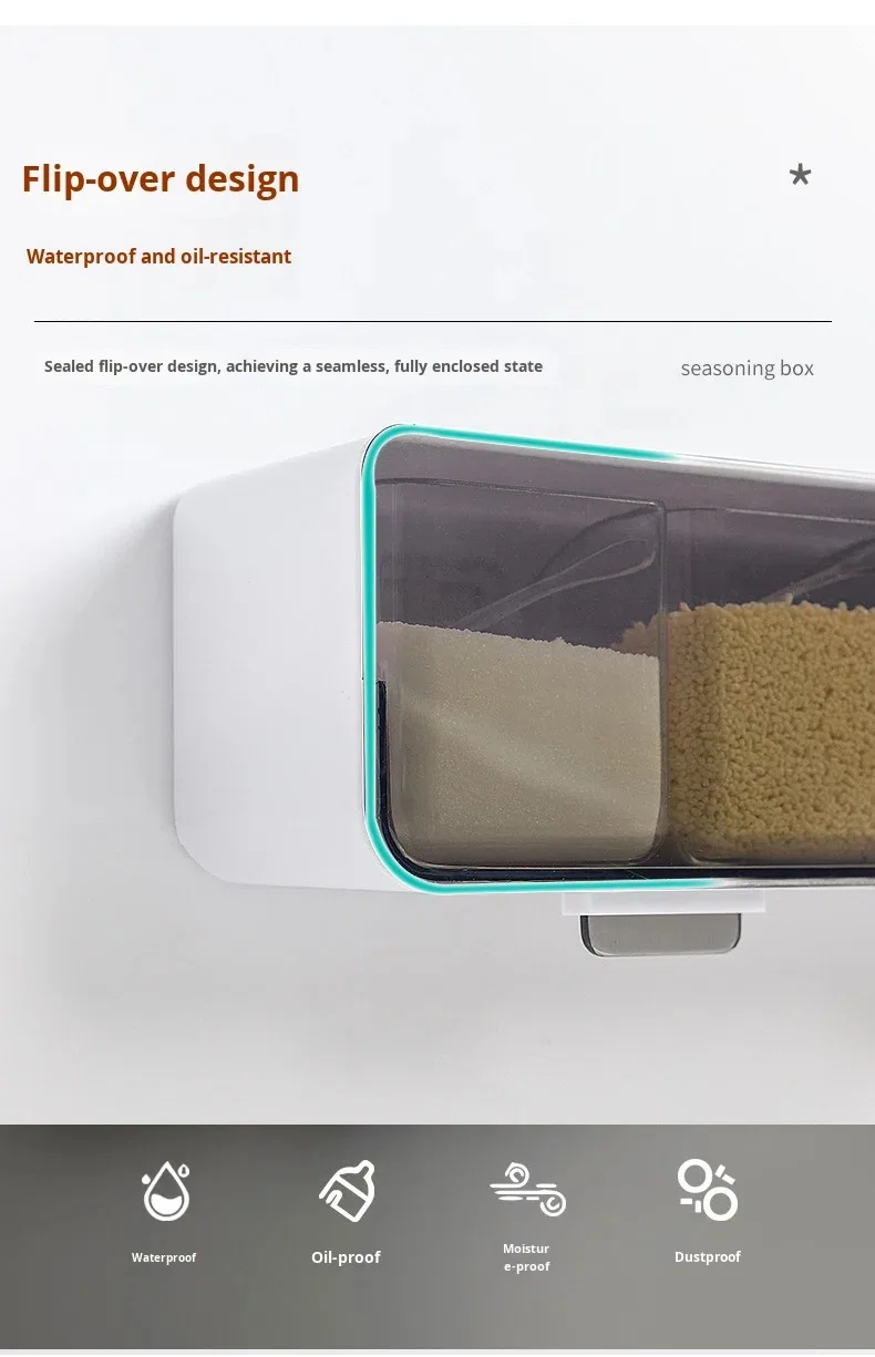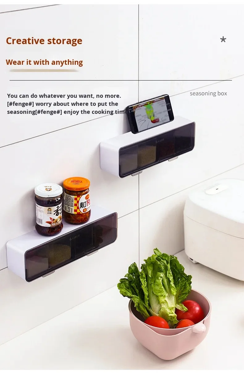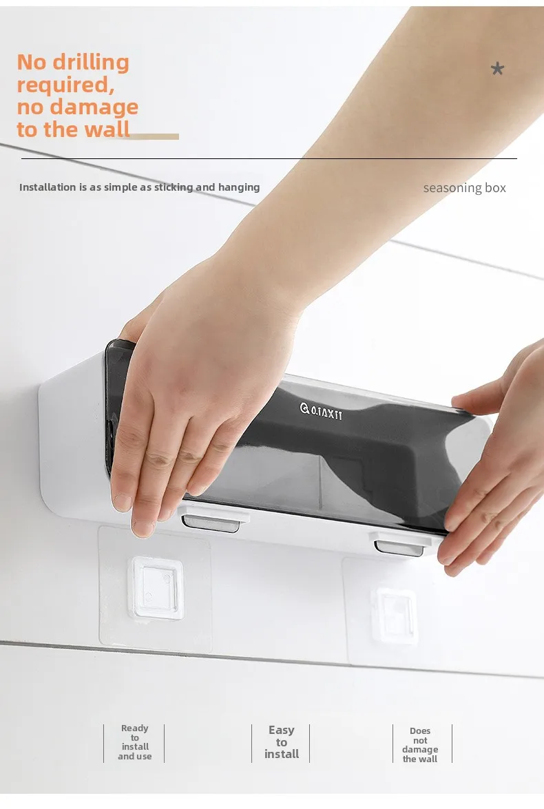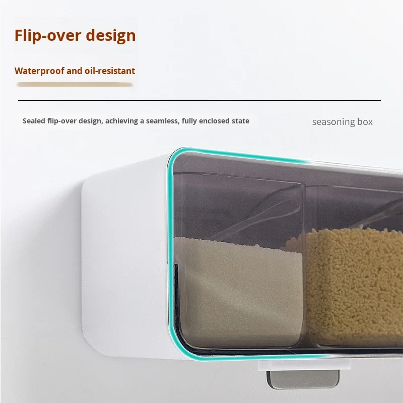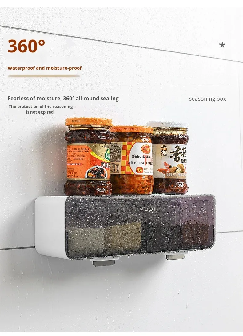 Conjunto de Caixa de Temperos de Parede com Quatro Compartimentos sem Perfuração, em Plástico, Seguro para Lava-Louças e Forno, Design Sustentável para Temperos Domésticos