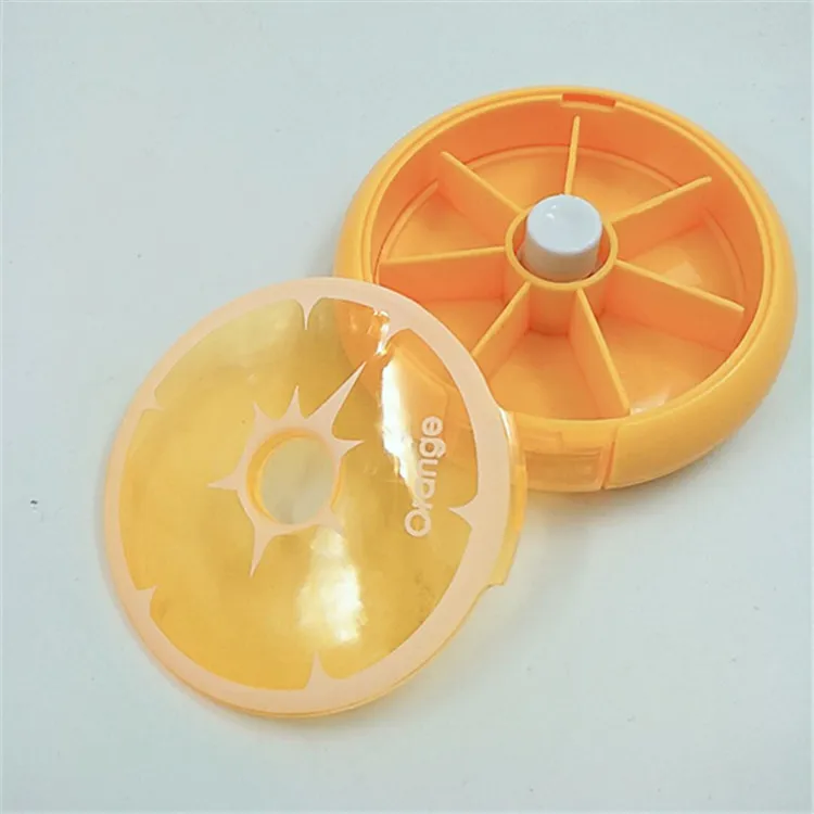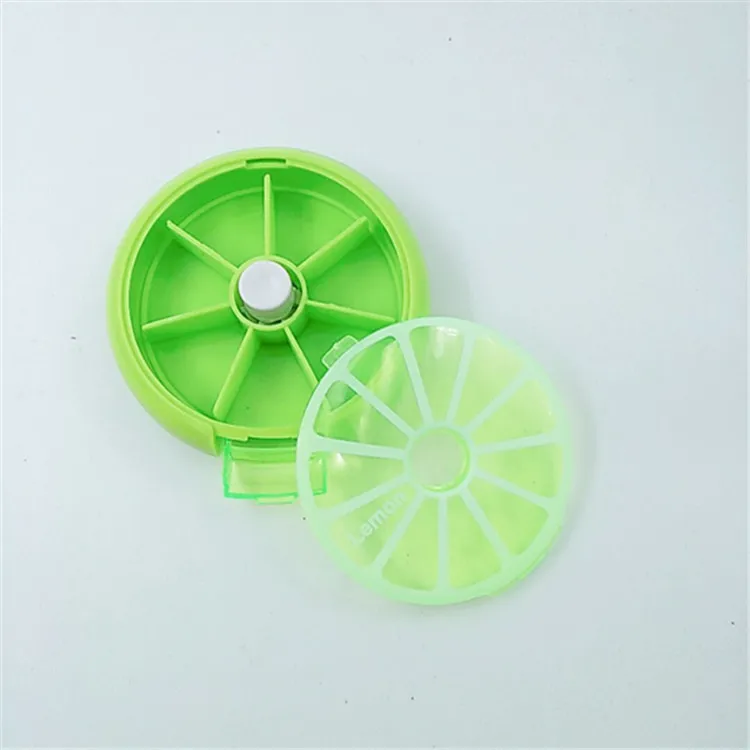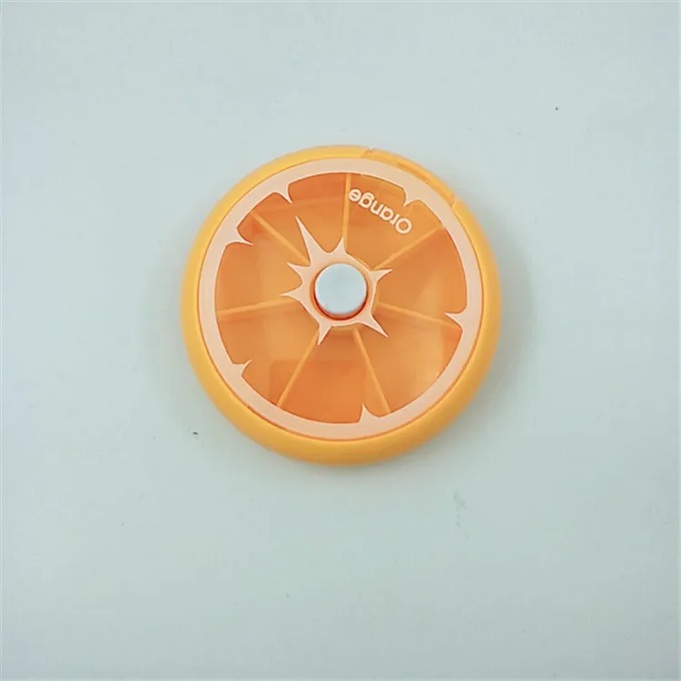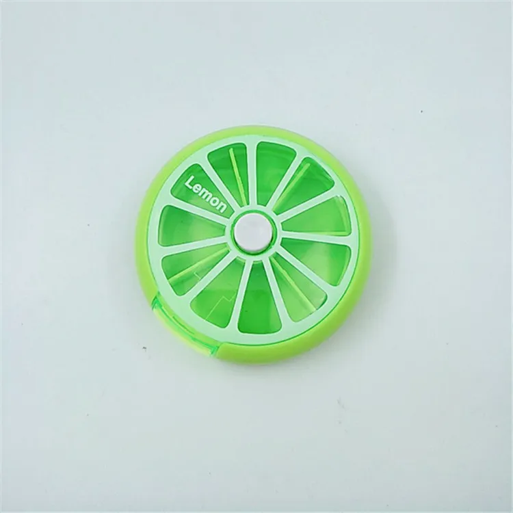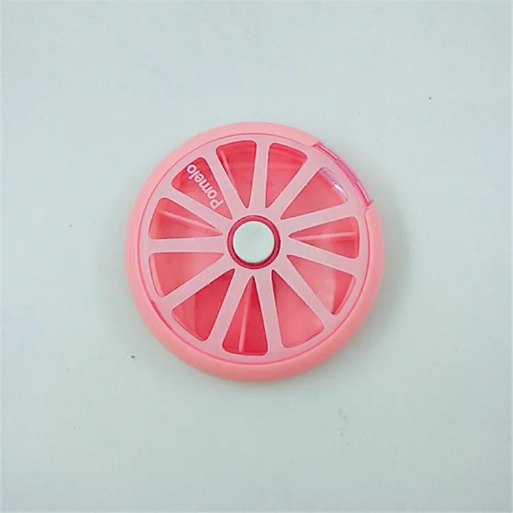 Mini Caixa de Compartimentos em Plástico com Formato de Fruta, Pressione e Gire, Portátil com 7 Compartimentos, Organizador de Comprimidos, Caixa de Medicamentos