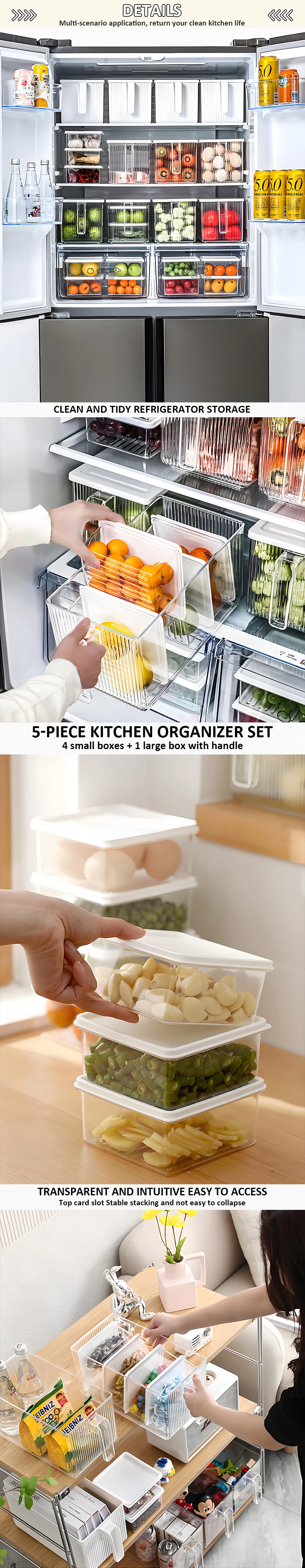 Caixa de Armazenamento de Alimentos em Plástico Empilhável com Tampa Selada Organizador para Cozinha e Despensa para Freezer e Geladeira para Volta às Aulas
