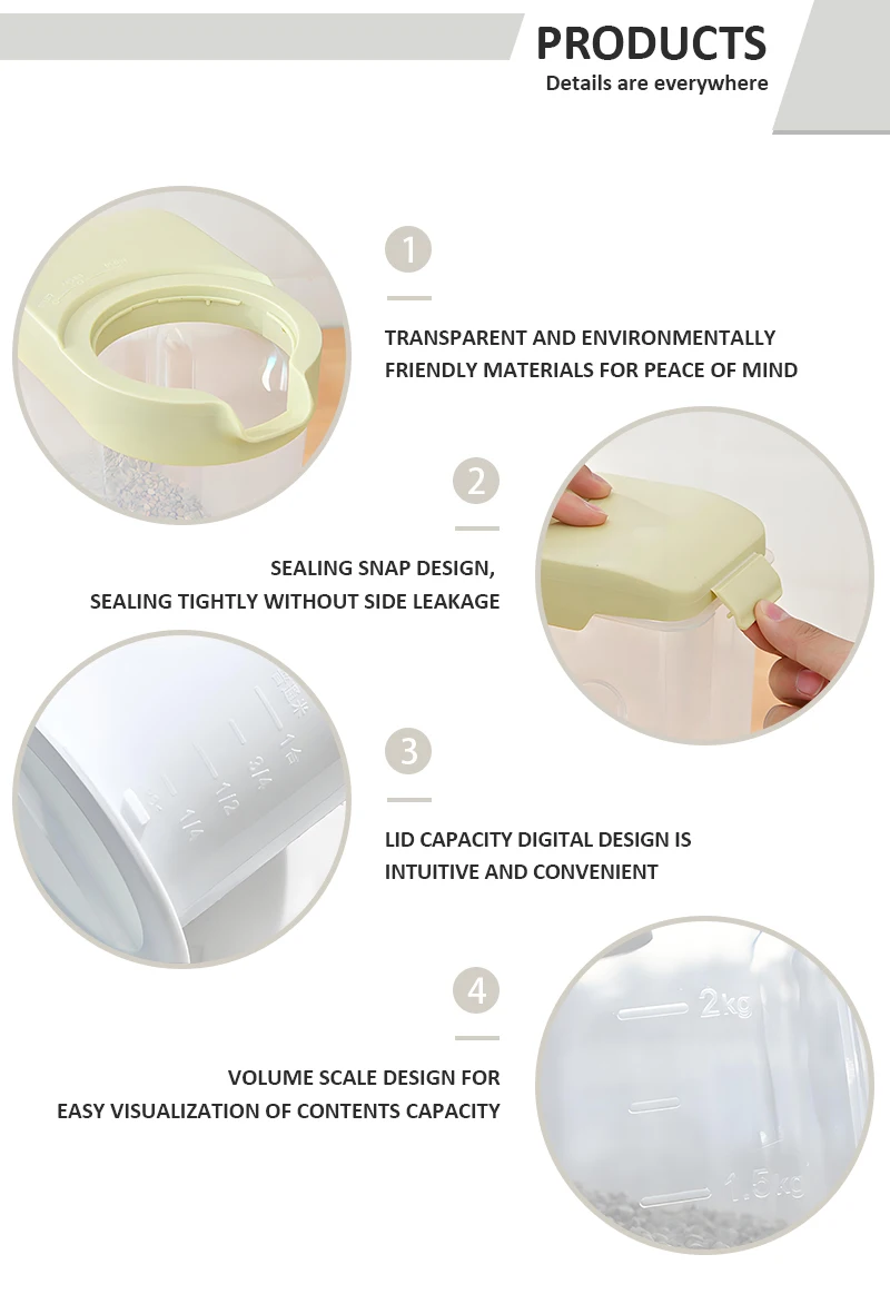 Recipiente Transparente em Plástico para Armazenamento de Alimentos à Prova de Umidade com Tampa Selada para Uso Doméstico Recipiente para Armazenamento de Ração de Cães e Gatos