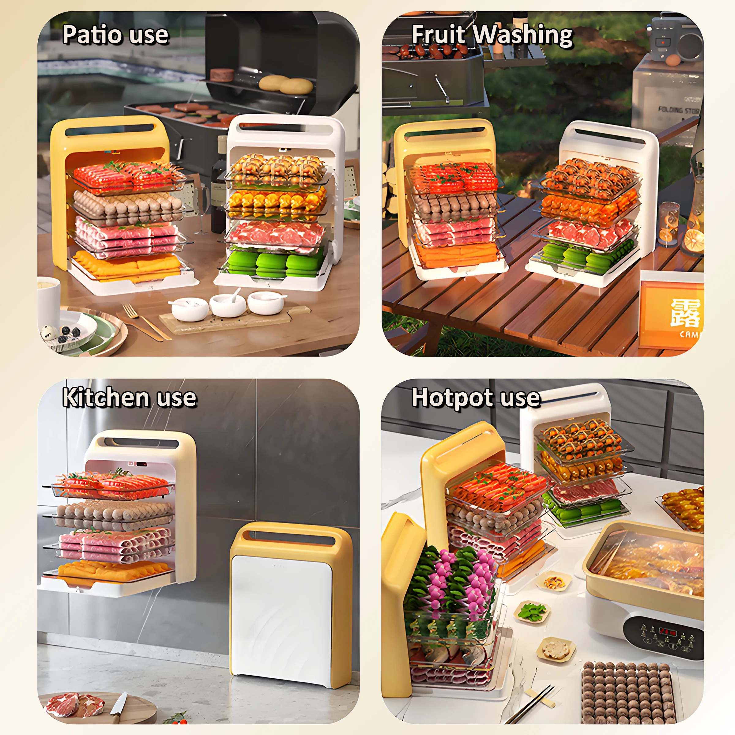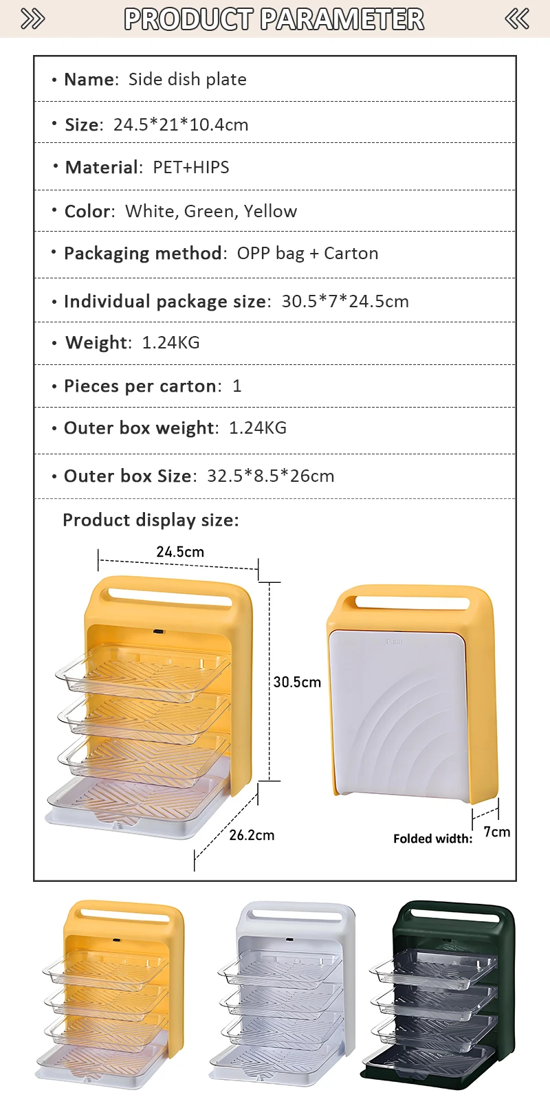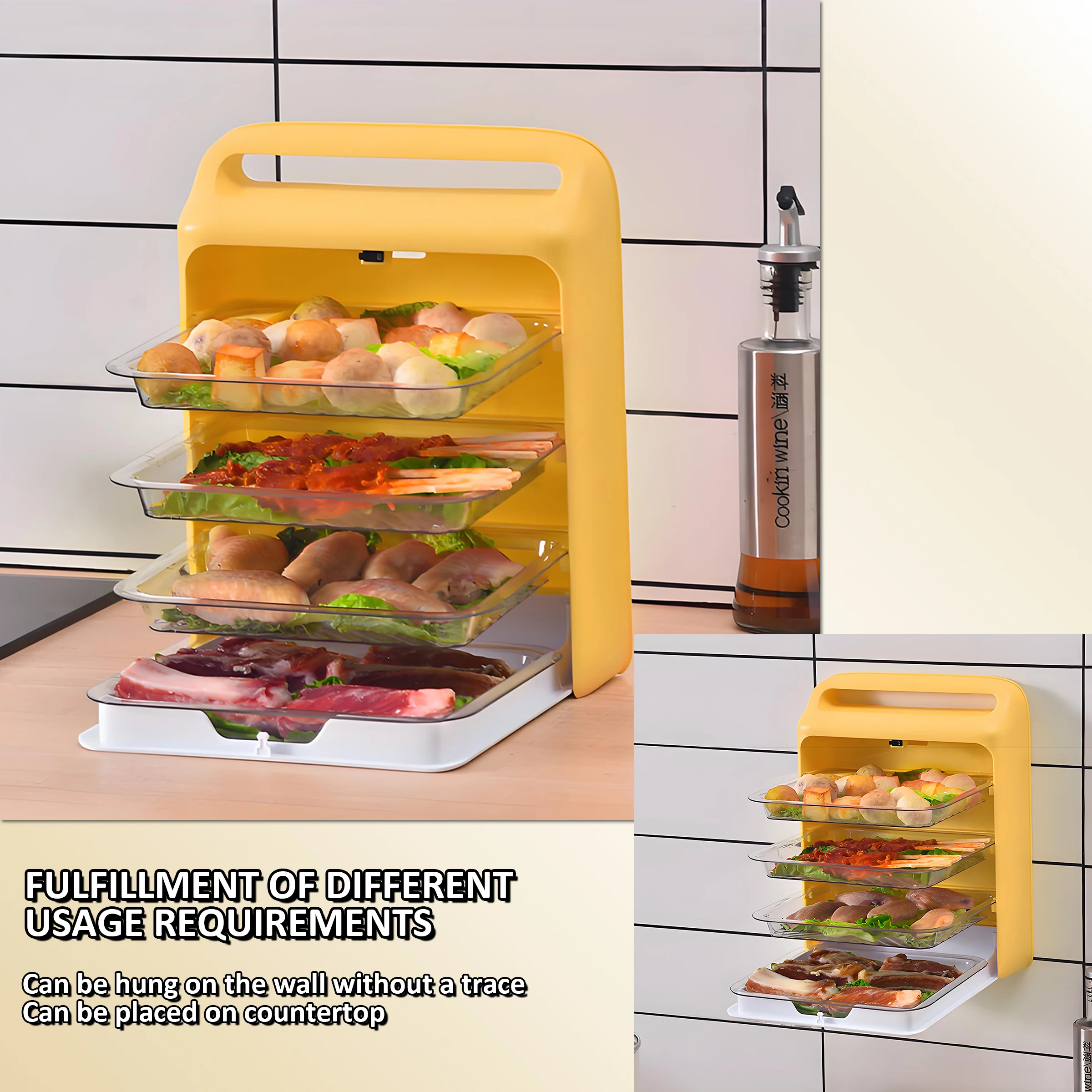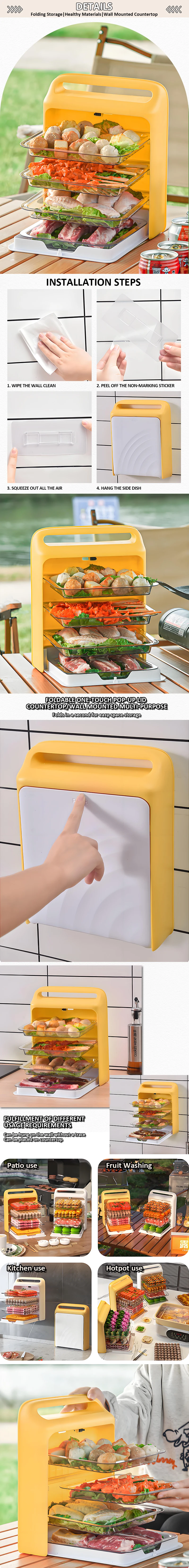 Bandeja de Cozinha de Plástico Alimentar Dobrável Montada na Parede com Várias Camadas para Preparação de Legumes, Recipiente de Armazenamento para Fondue