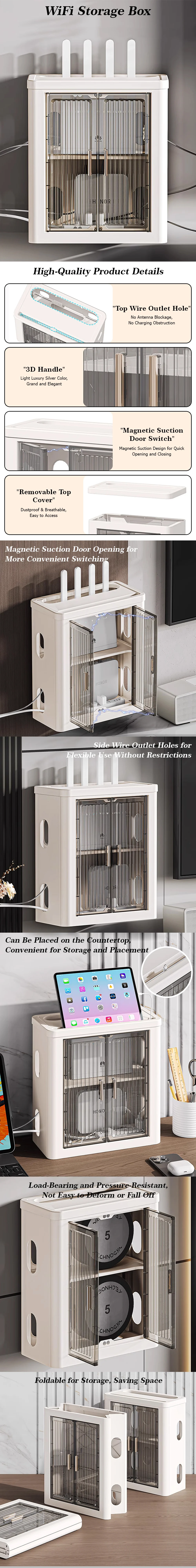 Caixa de Armazenamento para Roteador WiFi Montada na Parede em Plástico e Alumínio com Material PP, Estilo Simples para Casa, Sala de Estar e Quarto