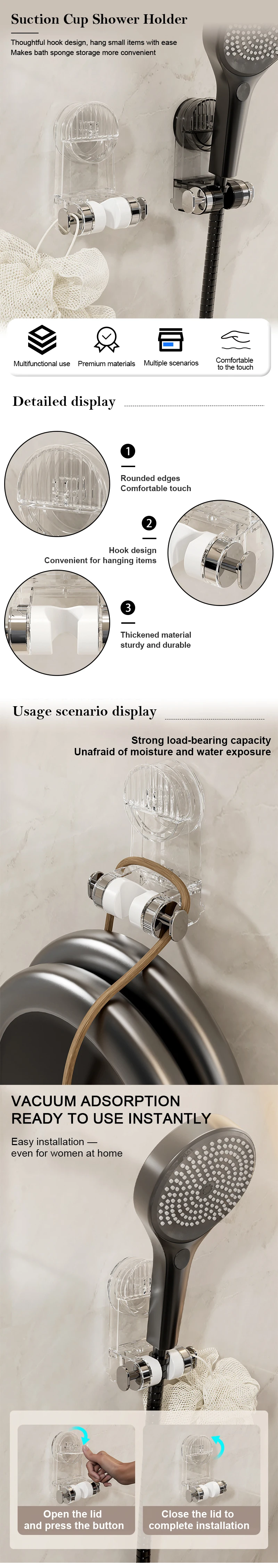 Venda por Atacado de Suporte Transparente Multifuncional para Chuveiro com Ventosa Forte, Estante de Armazenamento, Embalagem OEM ODM