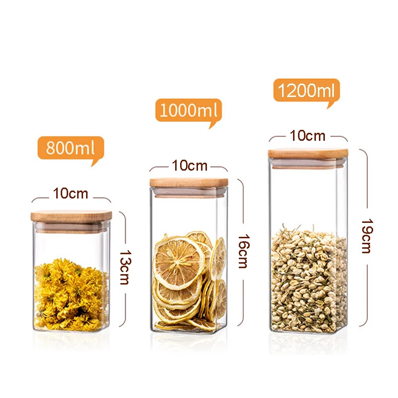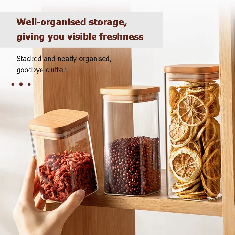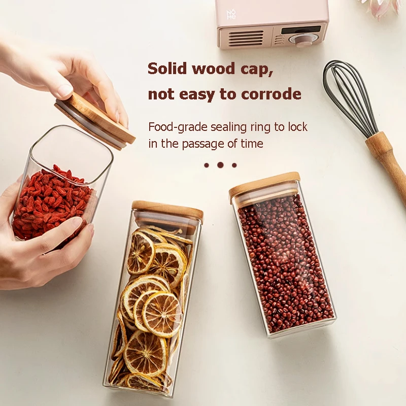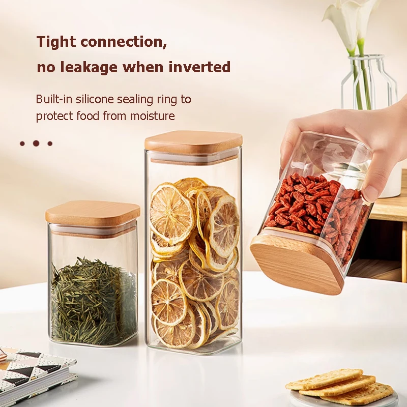 Recipiente de Armazenamento Ecológico em Vidro Borossilicato com Tampa de Bambu Airtight Resistente ao Calor para Cozinha