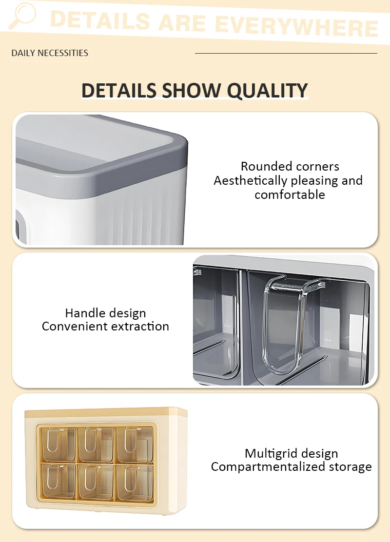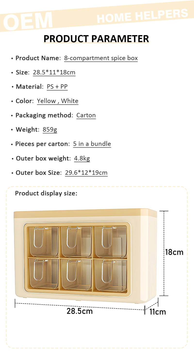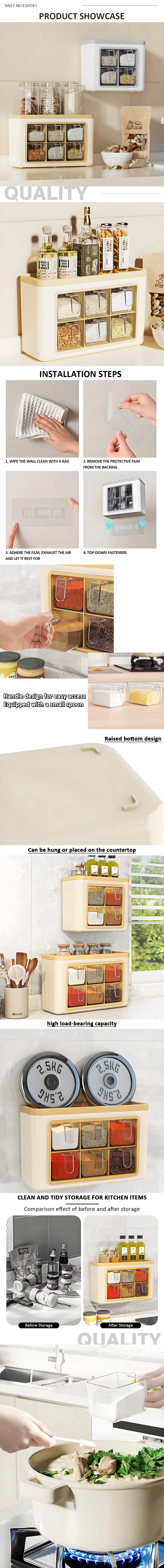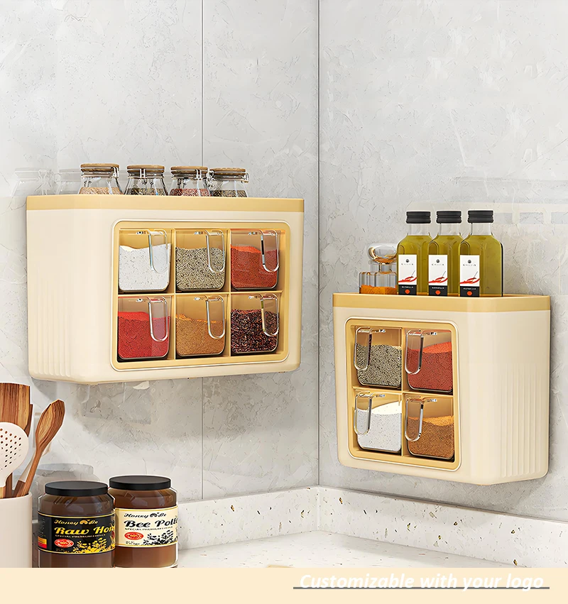 Atacado Estilo Europeu Moderno Caixa de Temperos Plástica de 6 Compartimentos com Suporte Dual Uso Parede Montada em Promoção Recipiente de Armazenamento de Alimentos