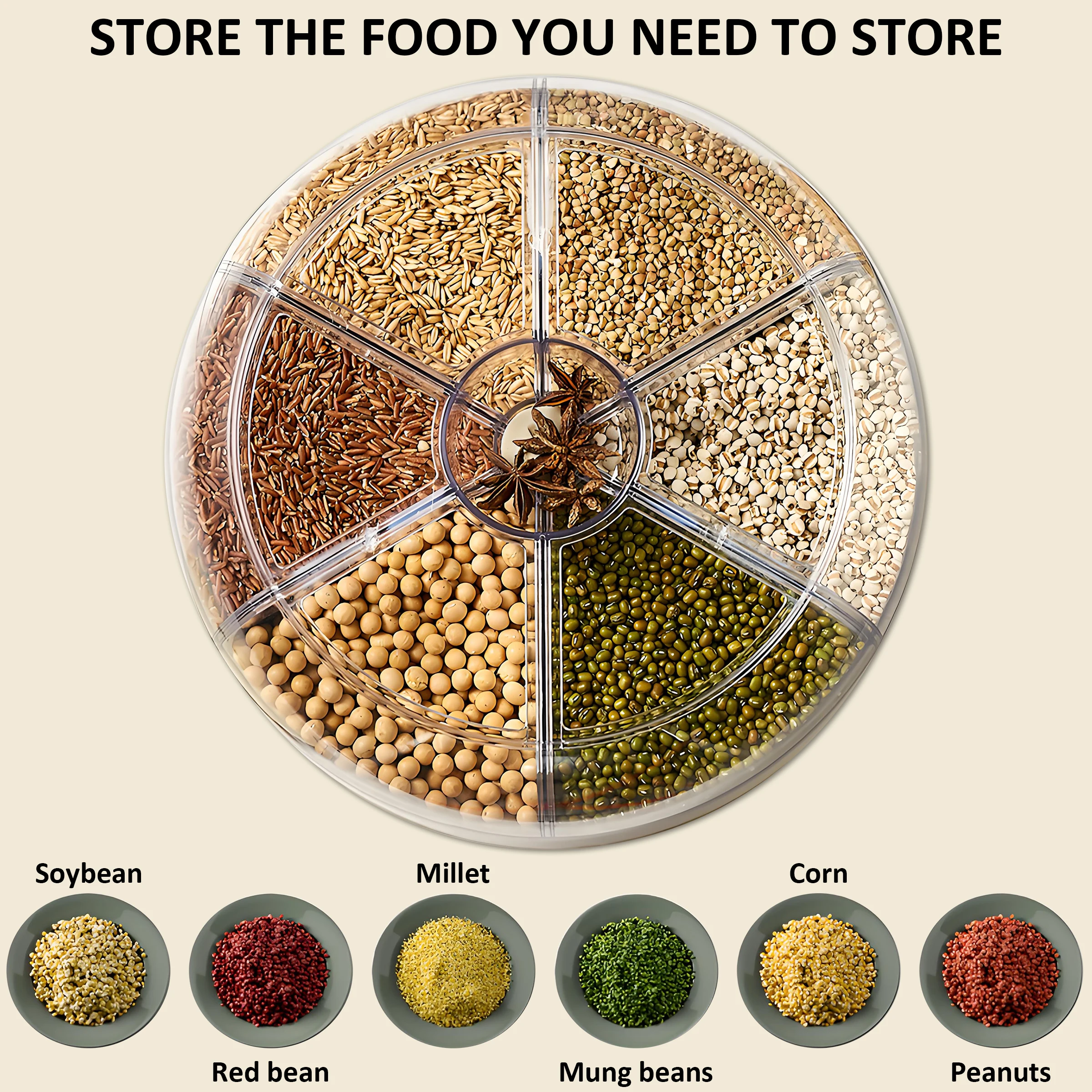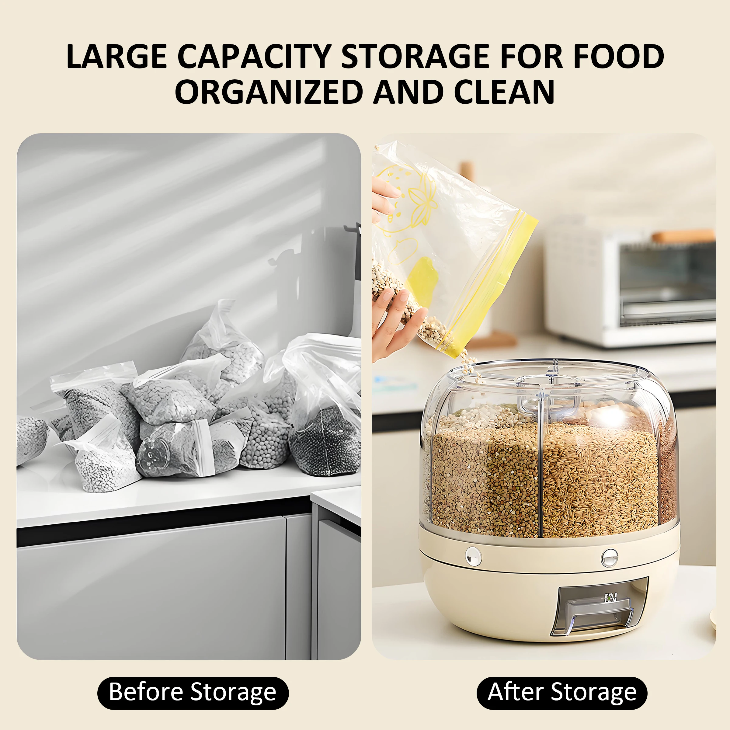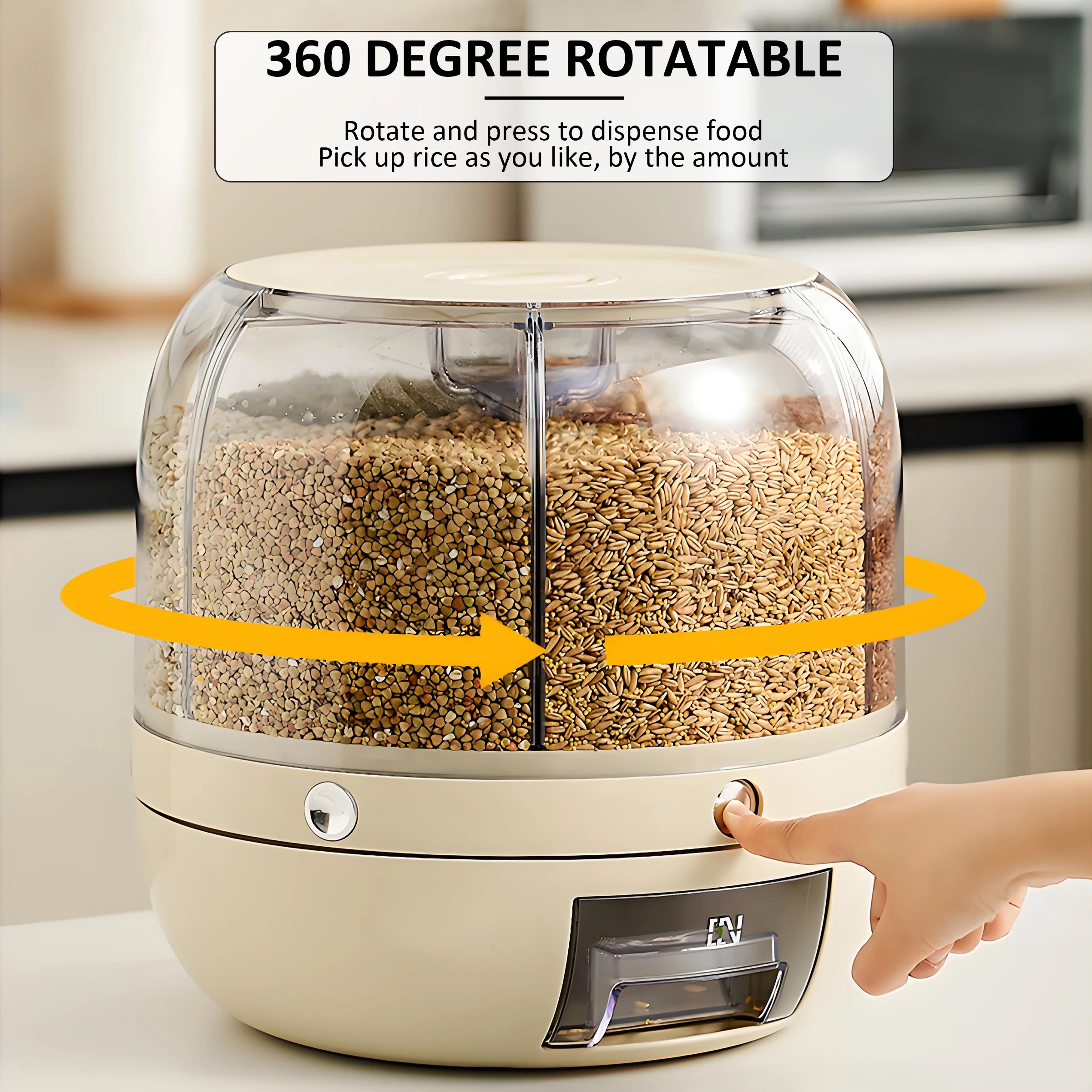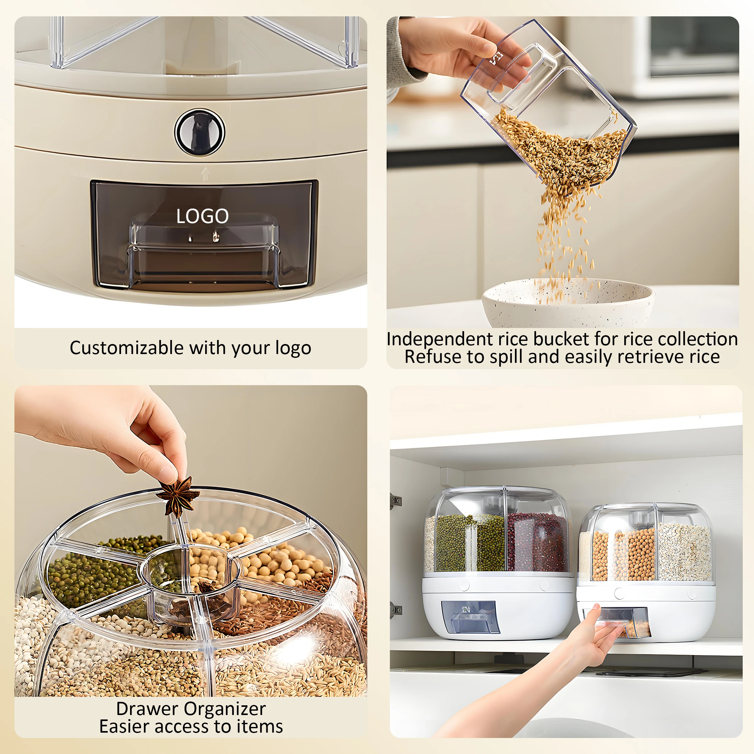 Горячая распродажа пластикового контейнера для хранения продуктов с 6 секциями, вращающийся влагостойкий кухонный дозатор для хранения риса, хлопьев, зерен