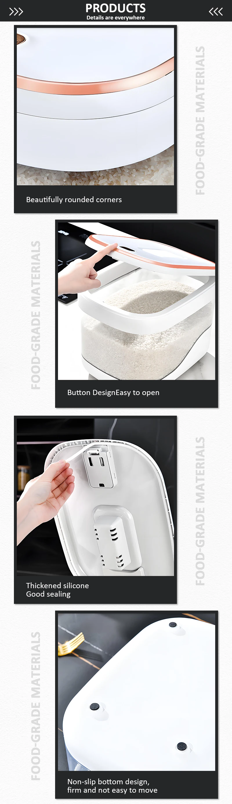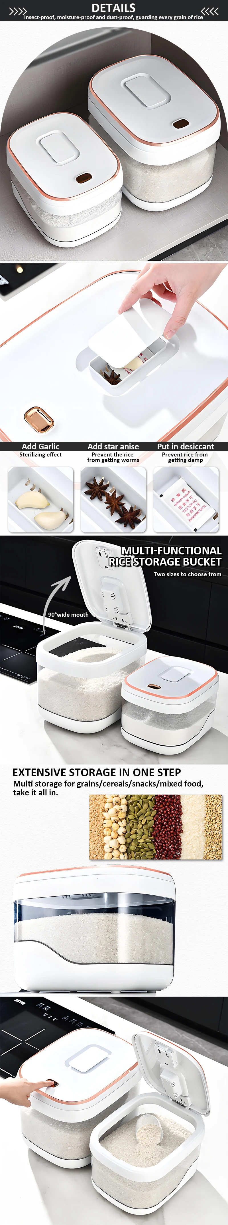 Пластиковое ведро большого объема для хранения риса на кухне из пищевого пластика с крышкой-кнопкой, удобная упаковка с нанесением логотипа