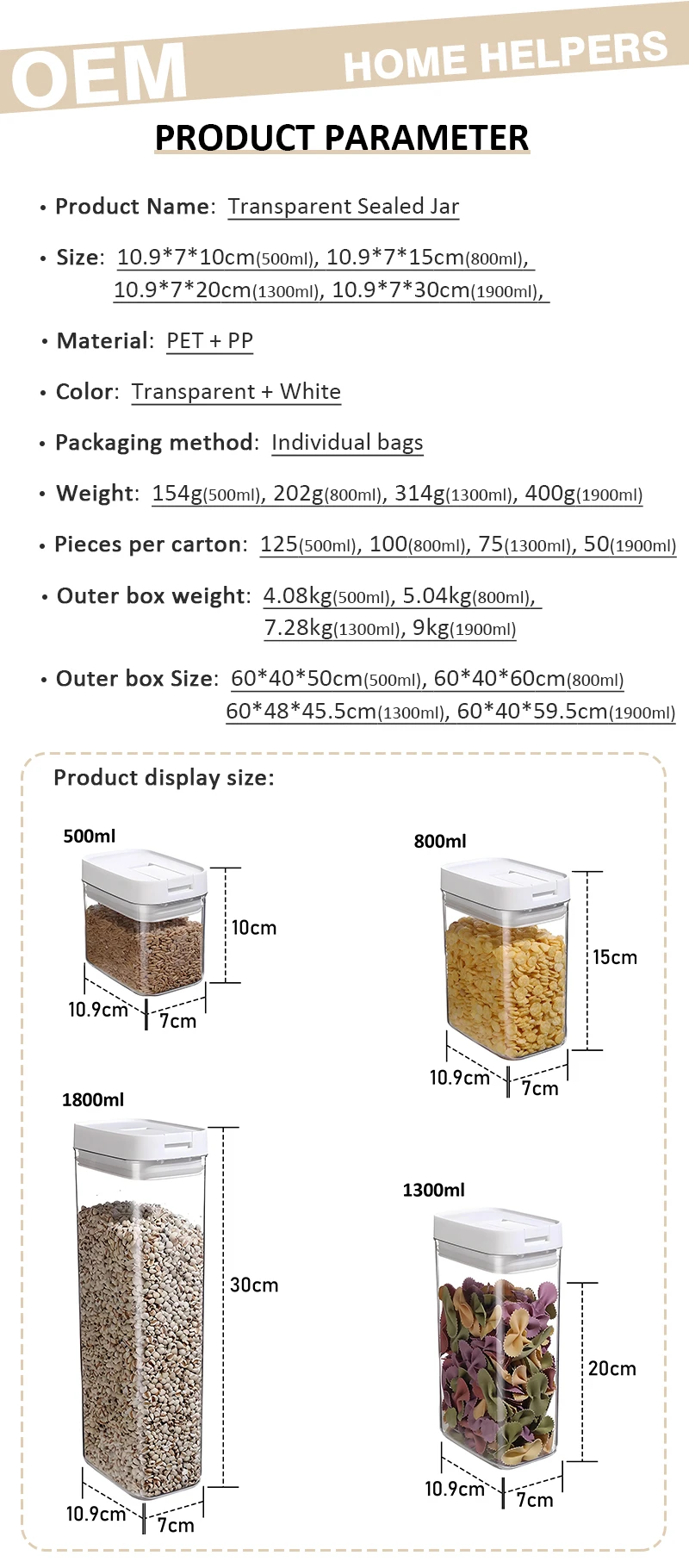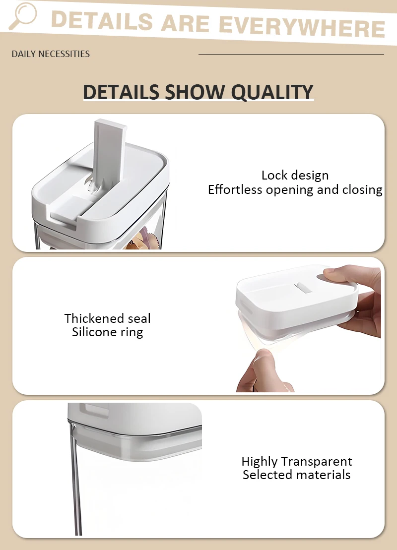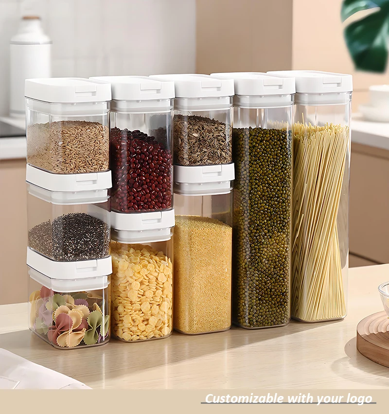 Shaffof plastmassa shilimshiq qopqog'i bilan zamonaviy dizayndagi oziq-ovqat saqlash qutisi, oziq-ovqat saqlash idishlari uchun latching bilan